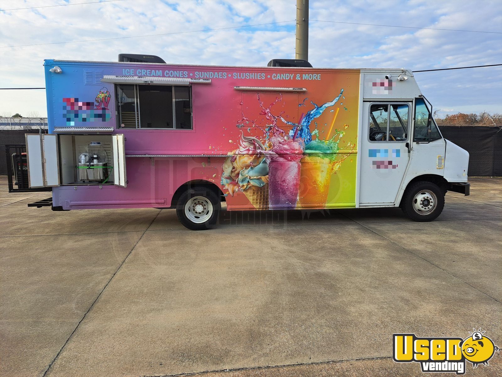 This truck is fully outfitted for frozen treats. Designed for high-volume service, it includes a premium soft-serve machine, multiple slushy dispensers, commercial refrigeration, and reliable storage for smooth operation. Well-maintained and in excellent running order, it’s ready to roll into business immediately. Make it yours by calling us now!
