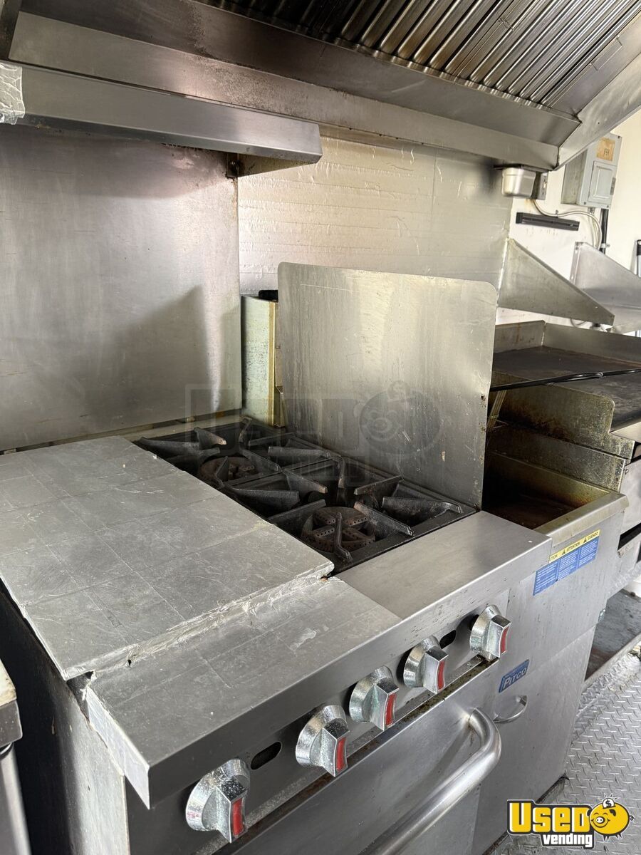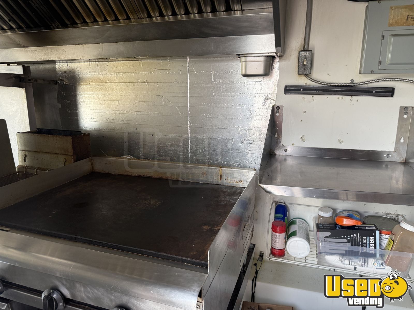 - Large commercial grill, fryer, and side burners