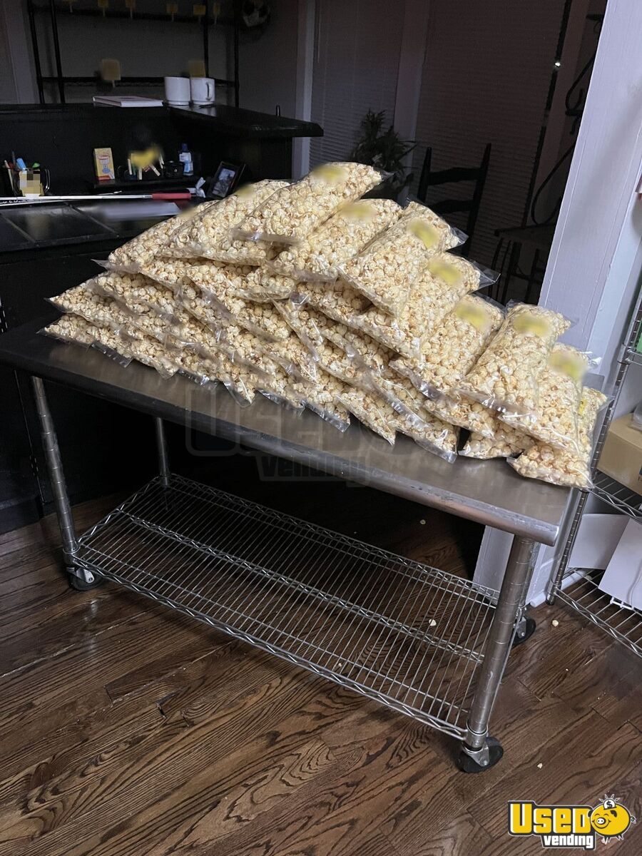 This kettle corn trailer is well equipped and ready for business. Designed for both event based or stationary operations, it’s ideal for selling kettle corn, lemonade, and packaged treats, complete with marketing materials and retail components. Need to know more? Call us now!