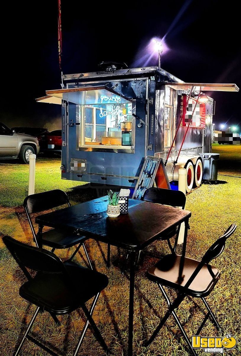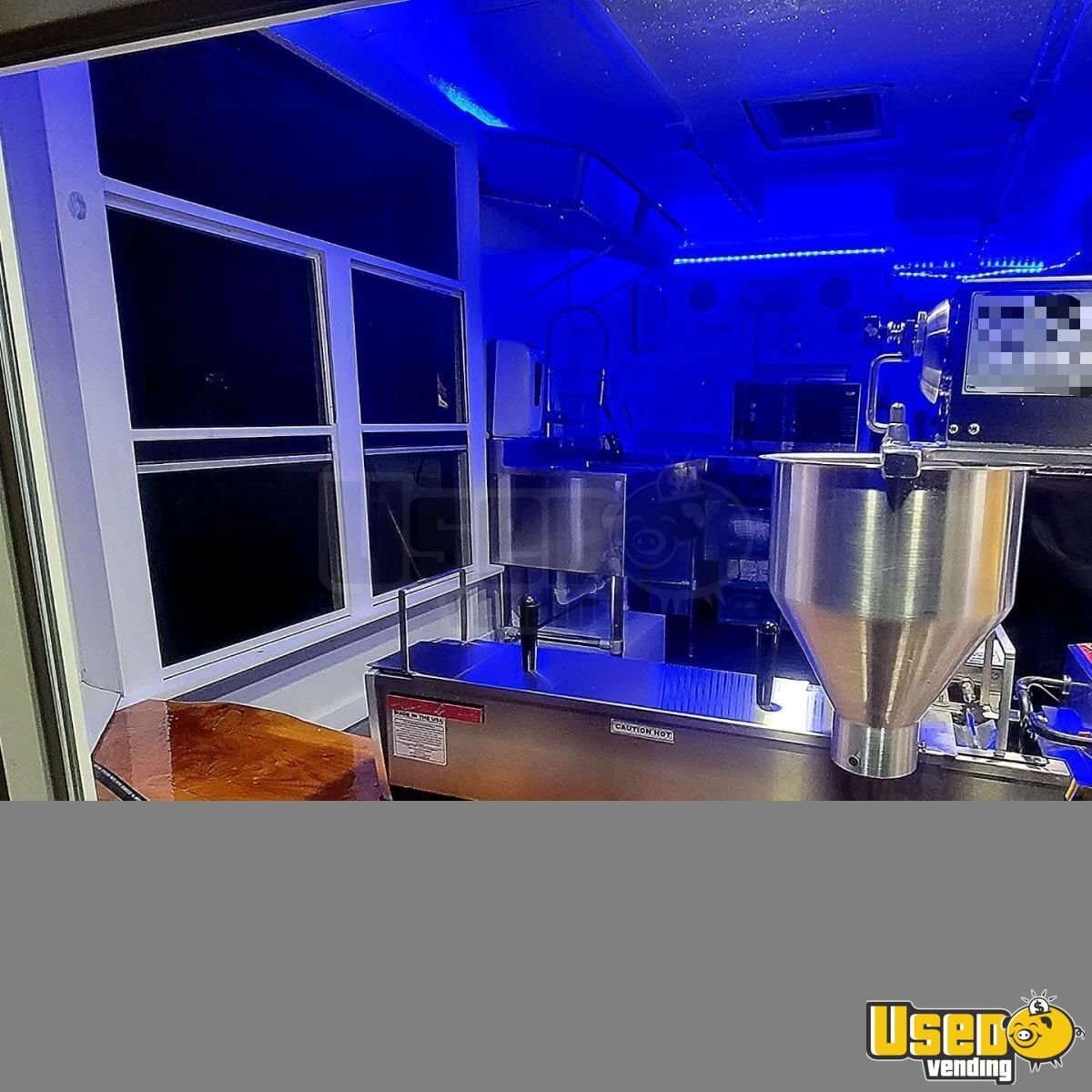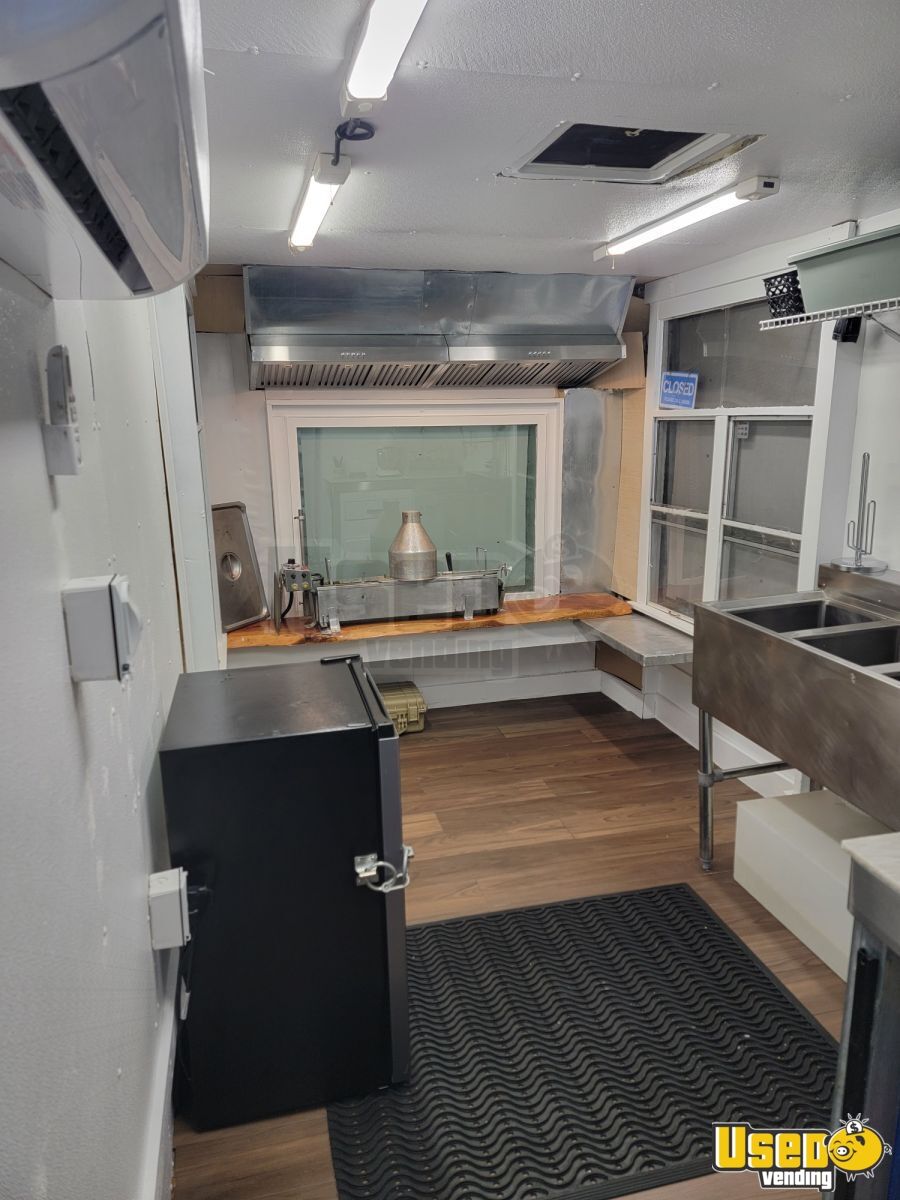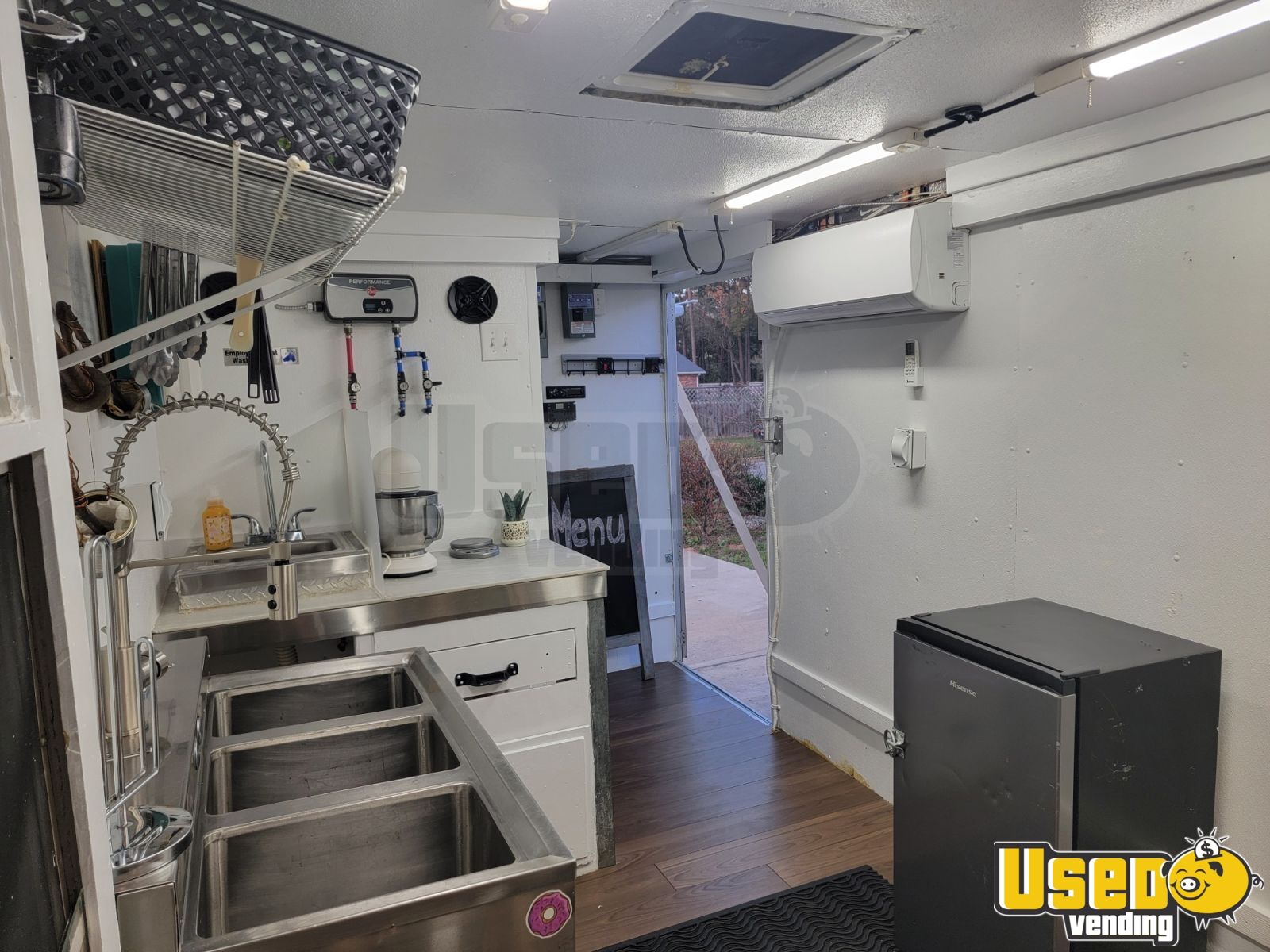 Standout attributes include: - Lil Orbits SS1200 Donut Machine - Dual concession windows and custom viewing window - Solar power setup with marine batteries - AC/heat mini-split system - Prep cooler, refrigeration, and full plumbing system - LED lighting, Bluetooth sound, and private storage room