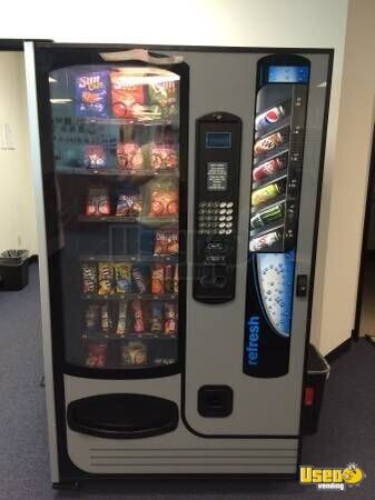 This USI combo machine will vend potato chips, cookies, candy, cold sodas, fruit juices, sports drinks and more. The snack side of the Combo features seven fully adjustable trays allowing quick re-configuration for the top selling products. A chilled option allows cold air from the drink side to help keep your chocolates from melting. The Cold drink side of the Combo vends both cans and bottles bringing variety and choice to any location. (12oz cans and 20oz bottles) It can take $1 bills and coins, Nickels, Dimes, Quarters, and recent Dollar coins. Specifications: Height 72" Width 42" Depth 34 3/8" Weight 987 Lbs