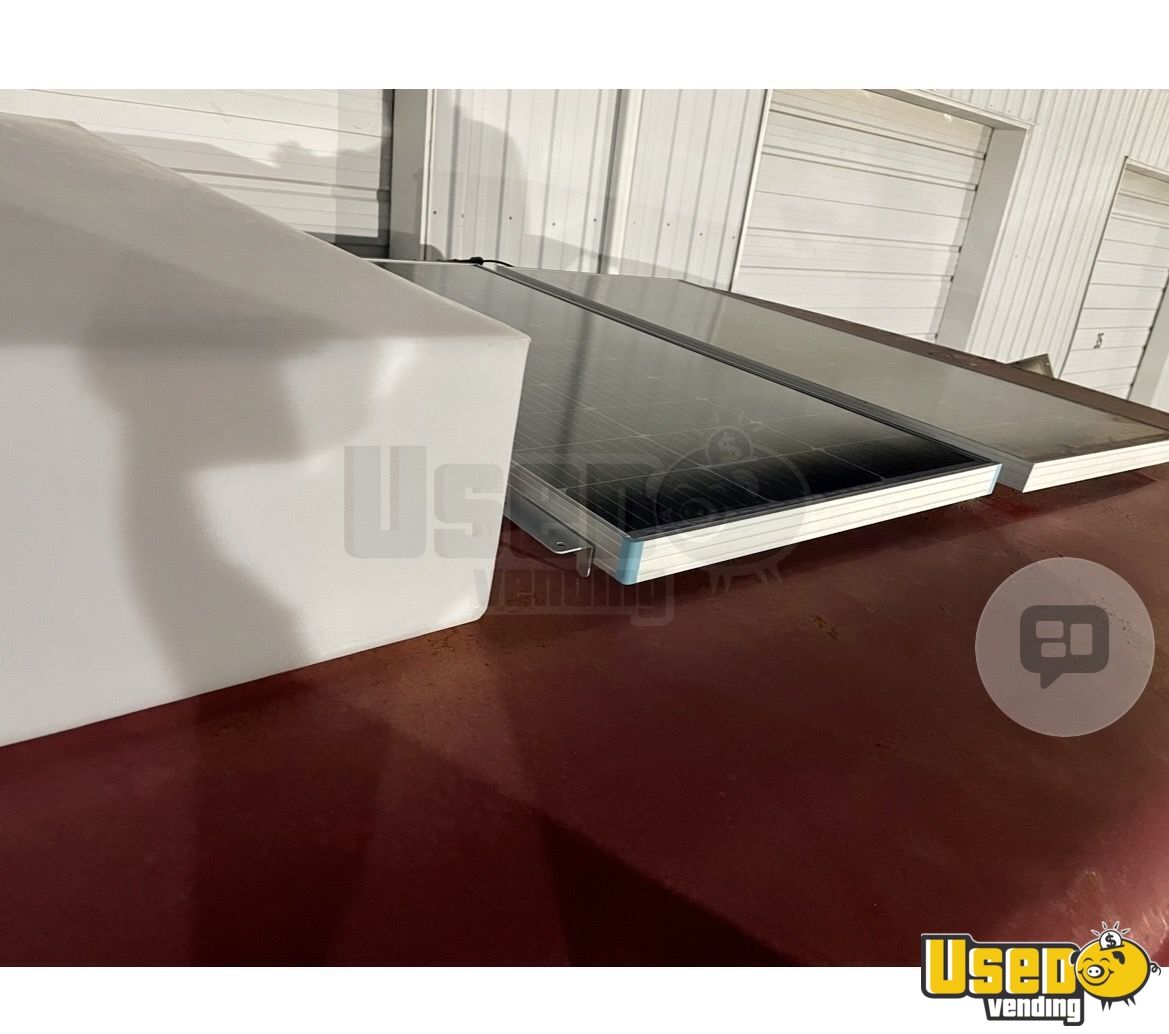 Standout features include: - Solar panels for supplemental power - 25-gallon fresh water tank - Small refrigerator (2.9 cu. ft.) - Concession window for easy service - Automatic transmission and gas engine - Durable steel body