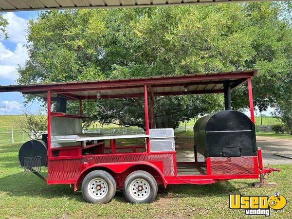 This trailer is in good condition. Front pit will cook 40 chicken halves at a time, rear pit will hold 30 halves. Flat top grill will cook 50 ribeyes at a time or 75 hamburger patties.
