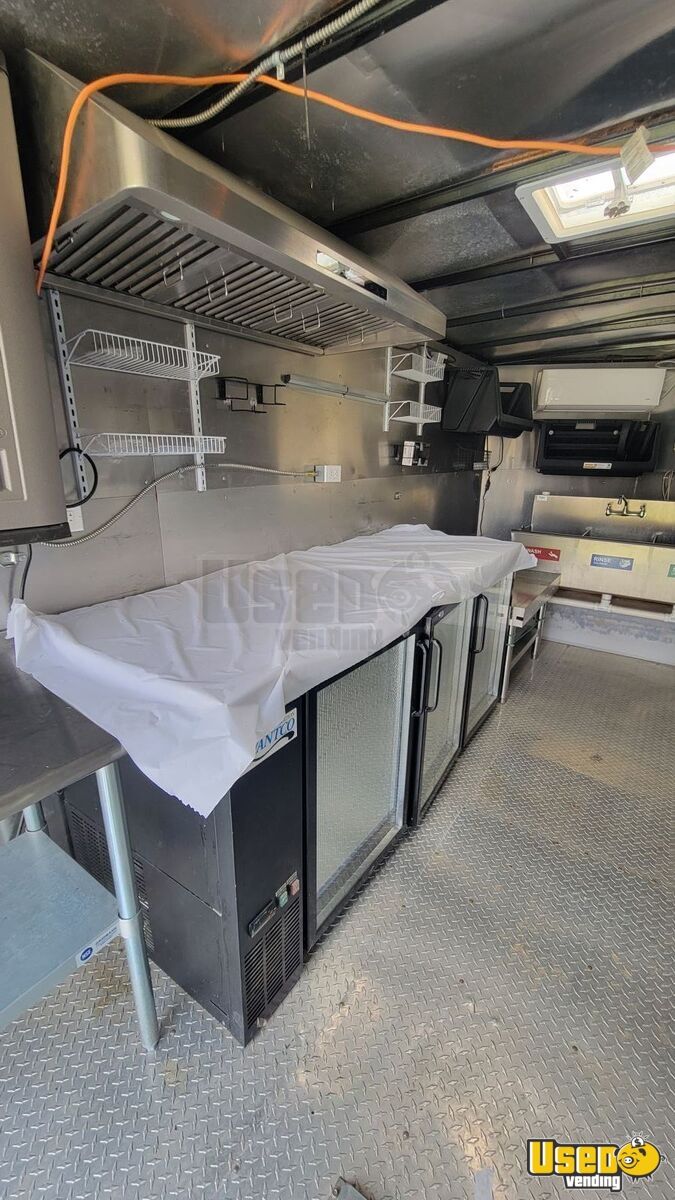 Standout features include: - Spacious undercounter fridge (lightly used) - Dual concession windows with outdoor serving shelf - Minisplit heat/AC and water heater - 3-bay and hand-wash sinks - 30-gallon fresh and 42-gallon grey water tanks - Stainless work tables and storage bins - Diamond-plated flooring and stainless wall covers