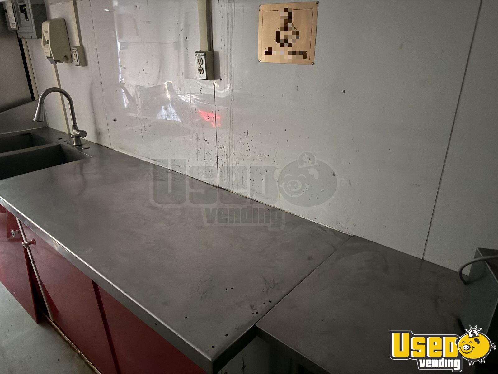 This 1999 8' x 19' kitchen trailer offers a reliable setup for mobile food service, featuring essential cooking and storage equipment in a durable steel body. Designed for convenience, it includes dual entry doors, two large serving windows, and nearly new tires for easy mobility.