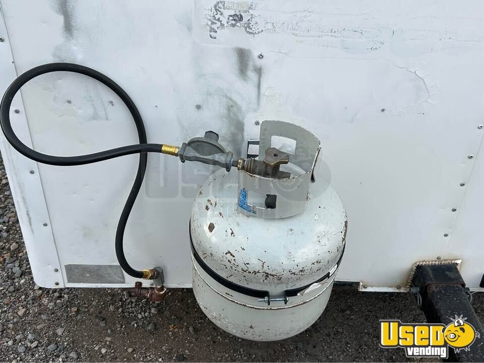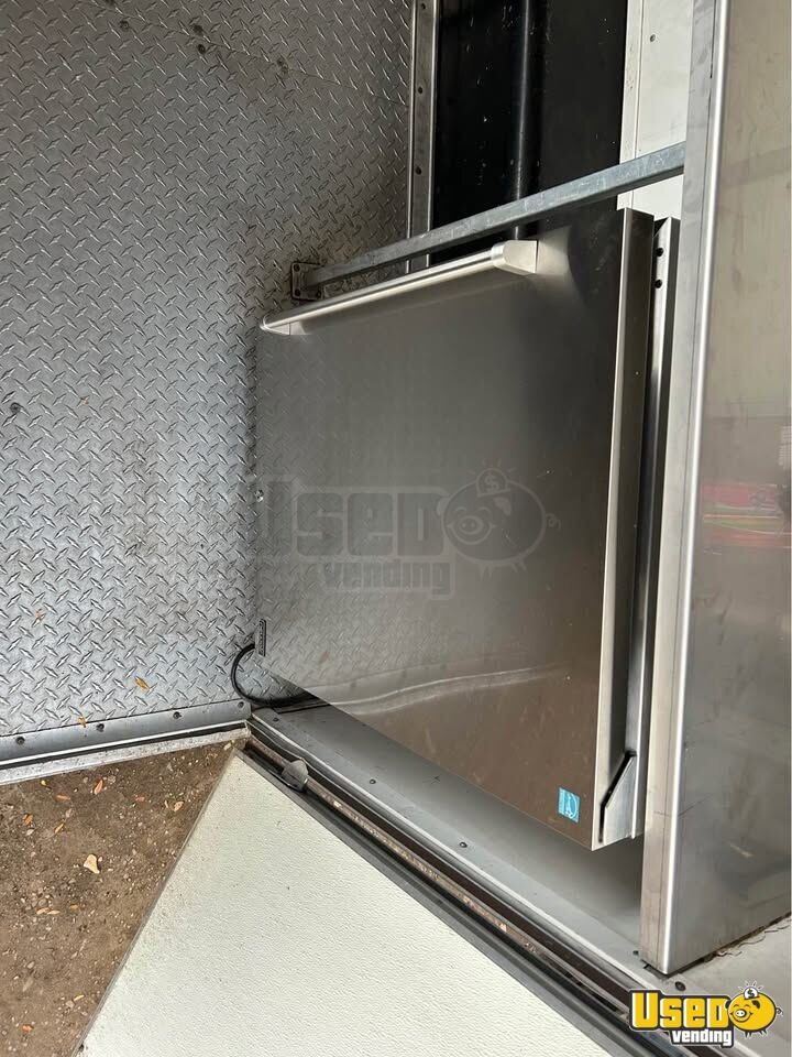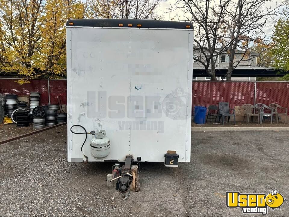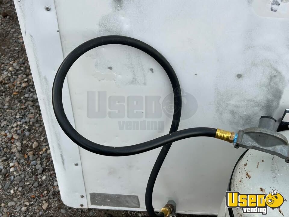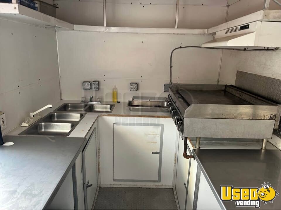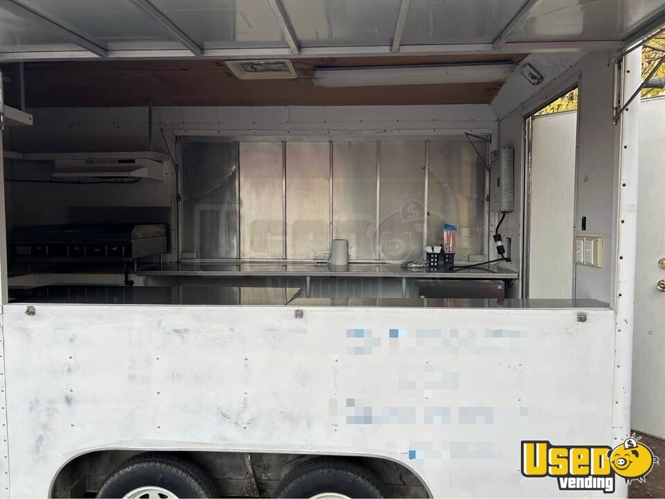 This 199 food trailer is a dependable choice for starting or expanding a mobile food business. With a clean off-white exterior and grey interior, it offers a practical setup ready for customization and operation.