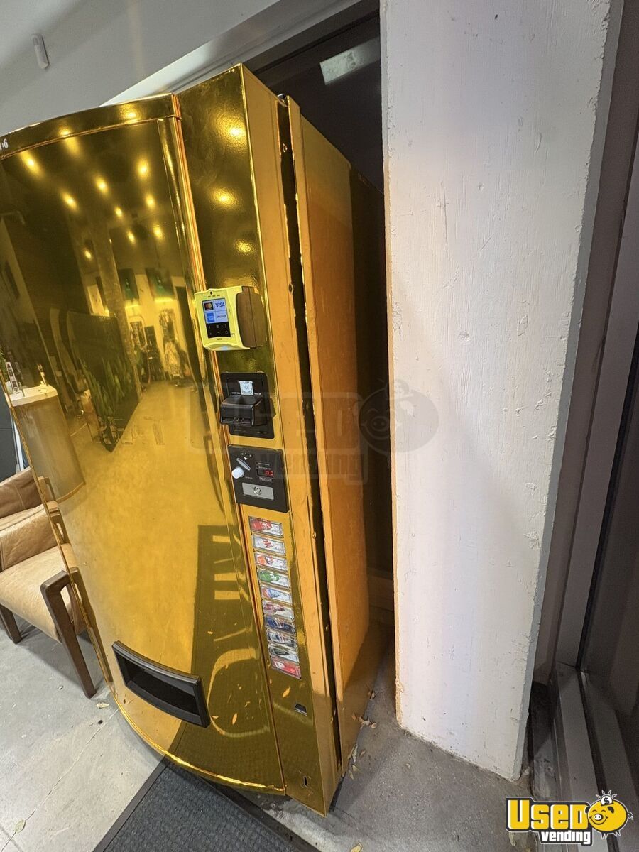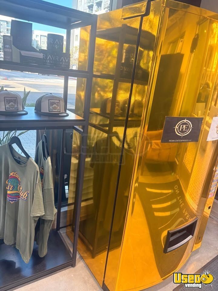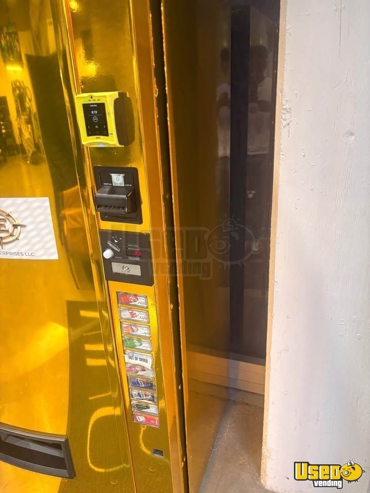 For Sale in California, here is a Vendo V-Max720 Luxury Gold Wrapped Soda Vending Machine
