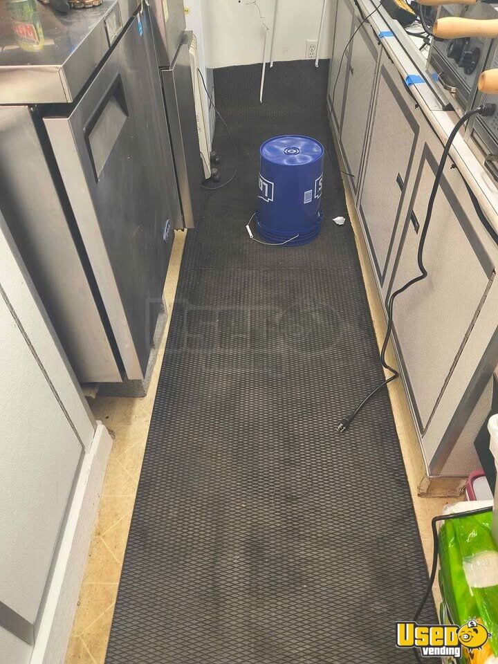 - Dual fryers, deep freezer, refrigerator, and prep station cooler
