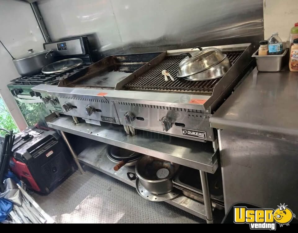 - Four-burner stove, oven, chargrill, flatgrill, and dual-basket fryer
