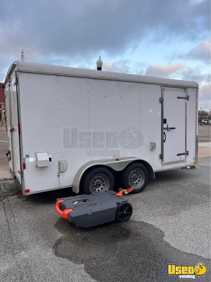 This concession trailer offers a clean, functional setup ready for your next food or beverage venture. Previously used for smoothies and juice, it features new refrigeration and a water pump, providing a foundation for customization into any cuisine concept. Interested? Call us now!