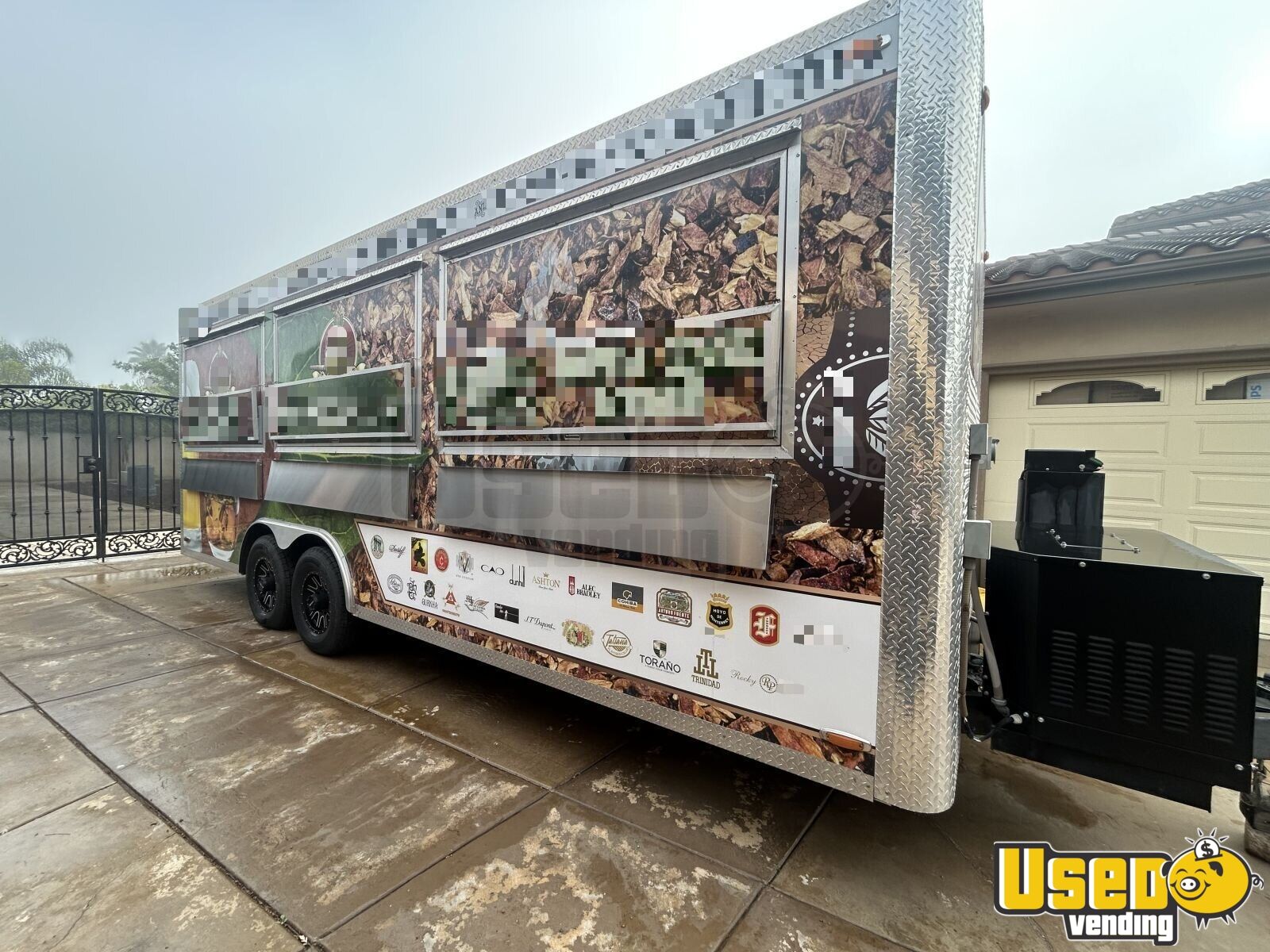 Standout features include: - 13,500 BTU rooftop air conditioning - Stainless steel walls and diamond-plated flooring - Foldable exterior customer counter - POWERTECH 8KW generator and shore power connection - Triple sink with fresh and gray water tanks - Interior and exterior LED lighting