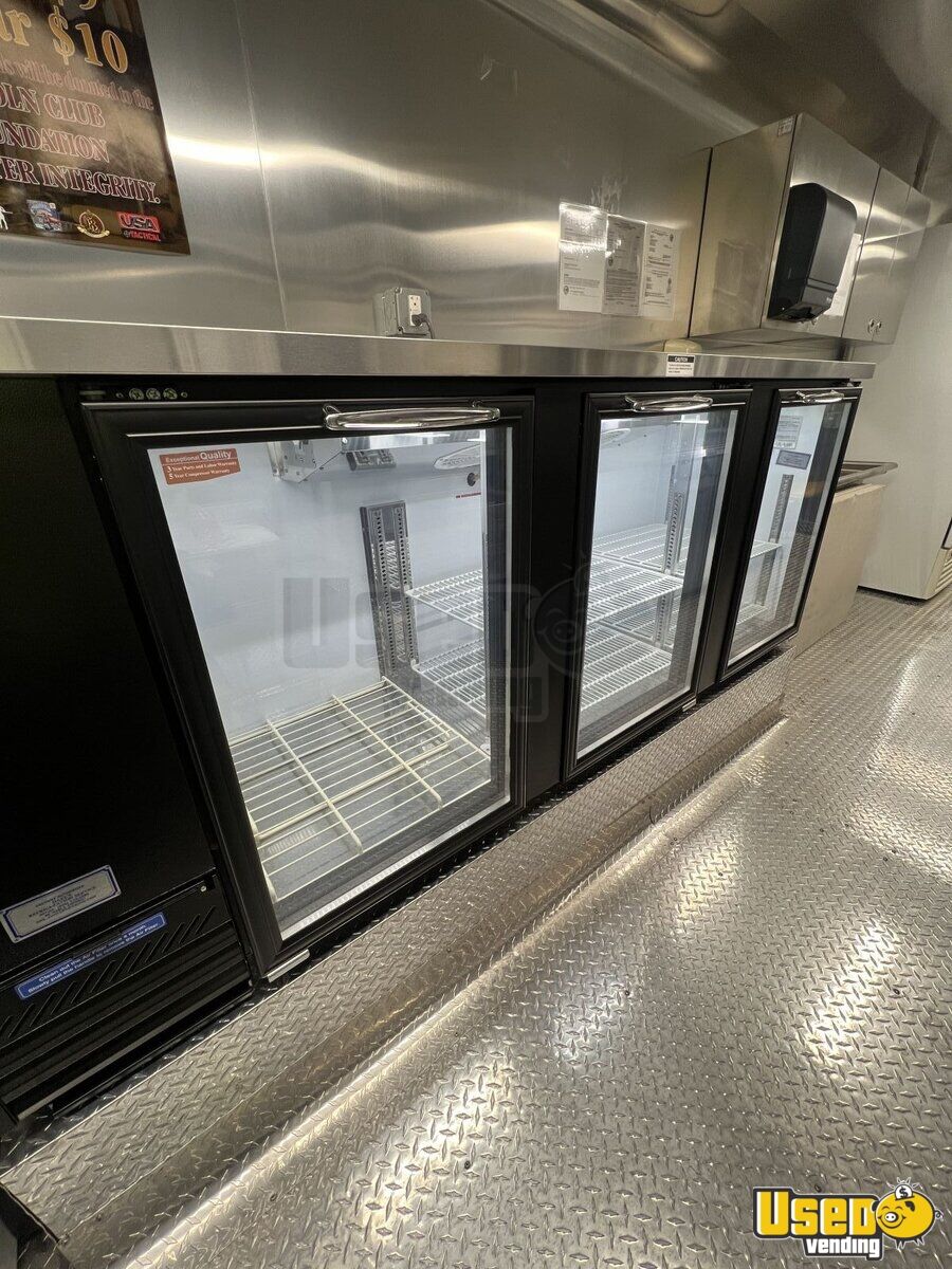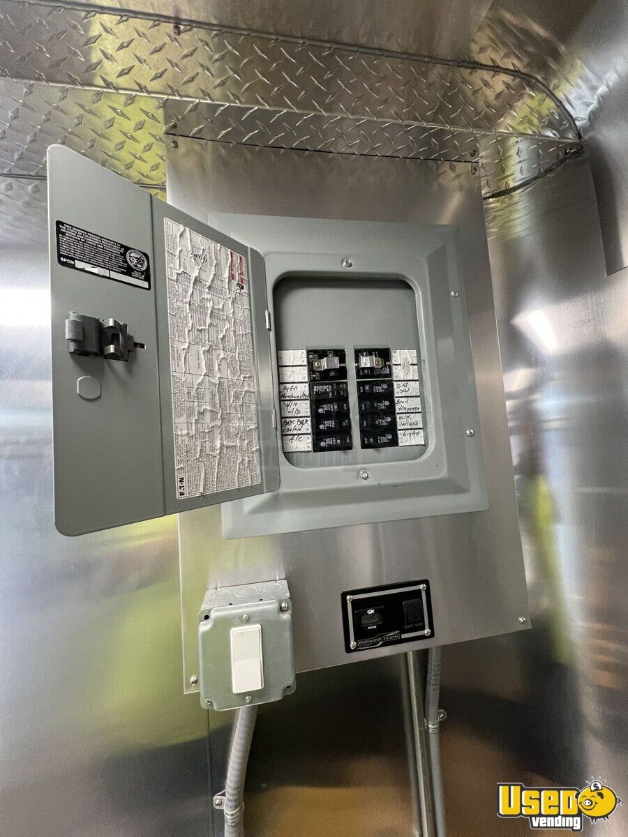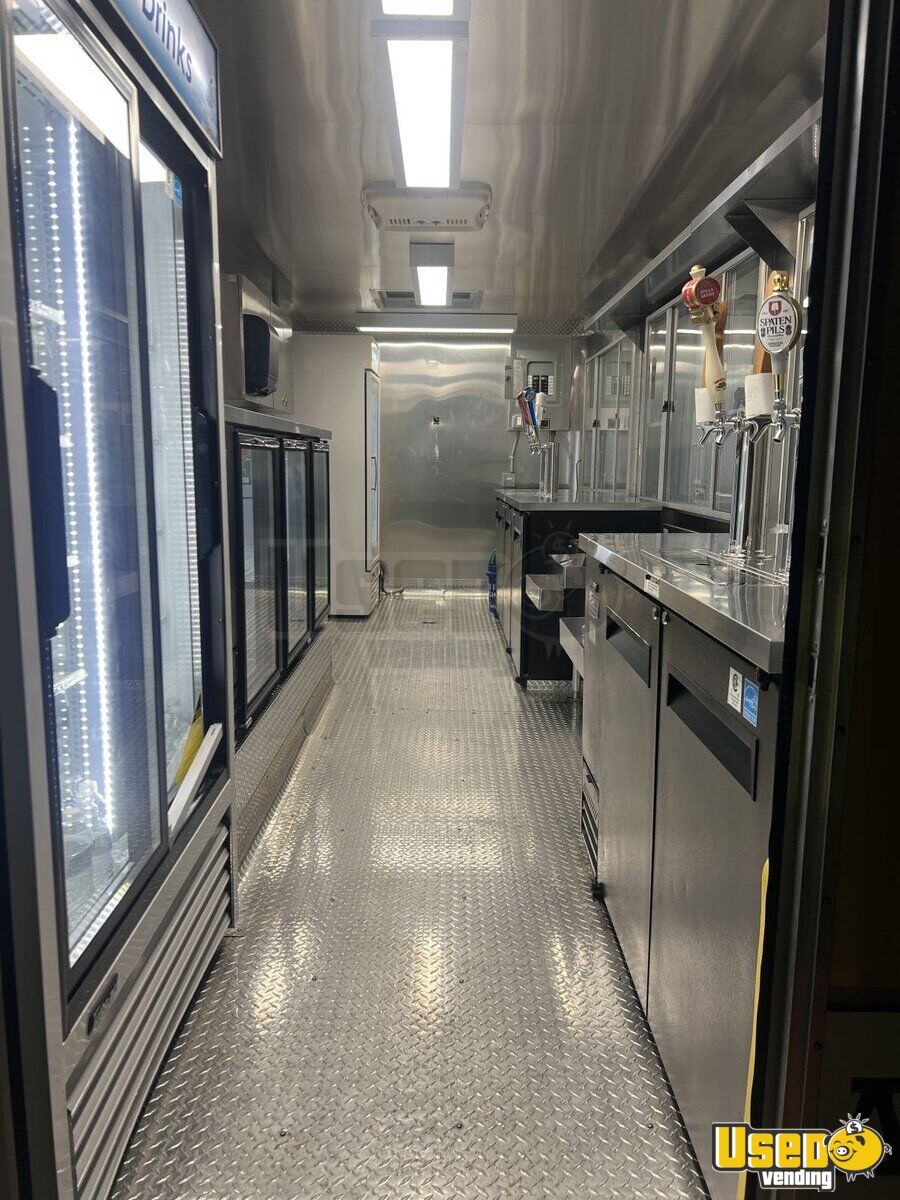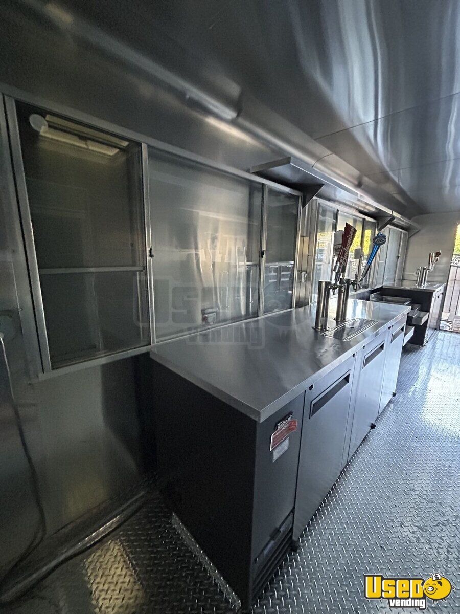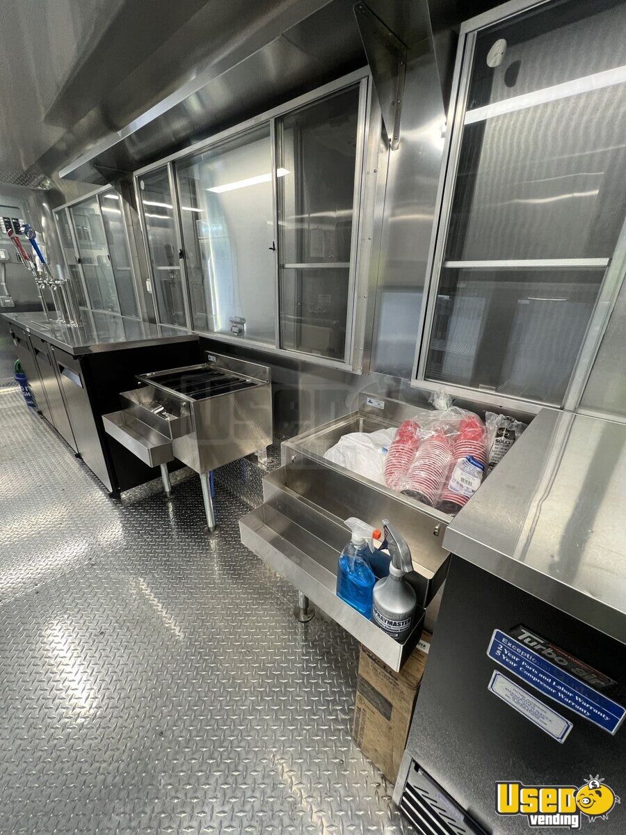 - 13,500 BTU rooftop air conditioning - Stainless steel walls and diamond-plated flooring - Foldable exterior customer counter - POWERTECH 8KW generator - Triple sink with fresh and gray water tanks - Multiple coolers + refrigeration - Kegerator tap cabinet - Interior and exterior LED lighting - 8.6' x 22' tubular body construction, and 7' interior height