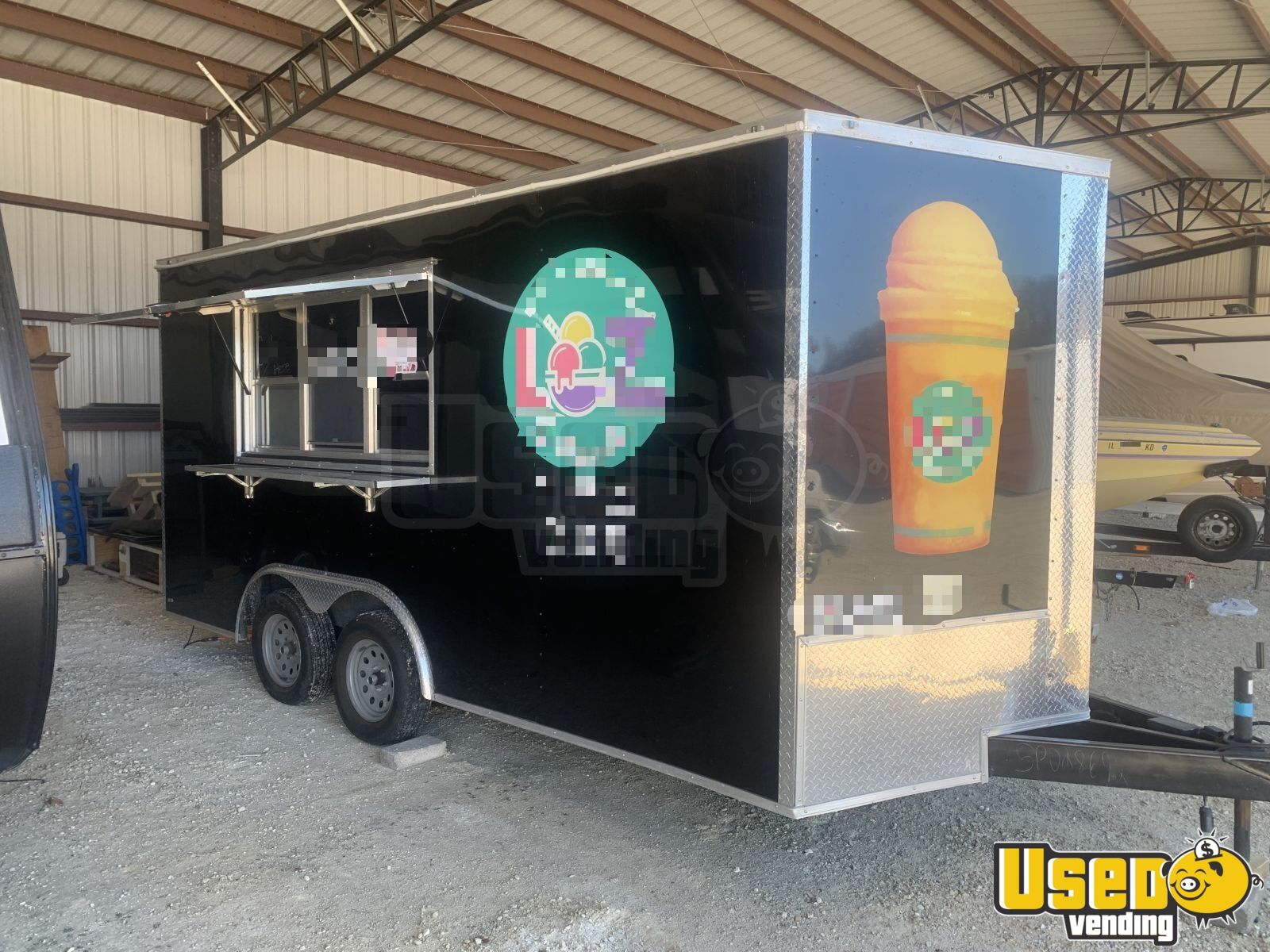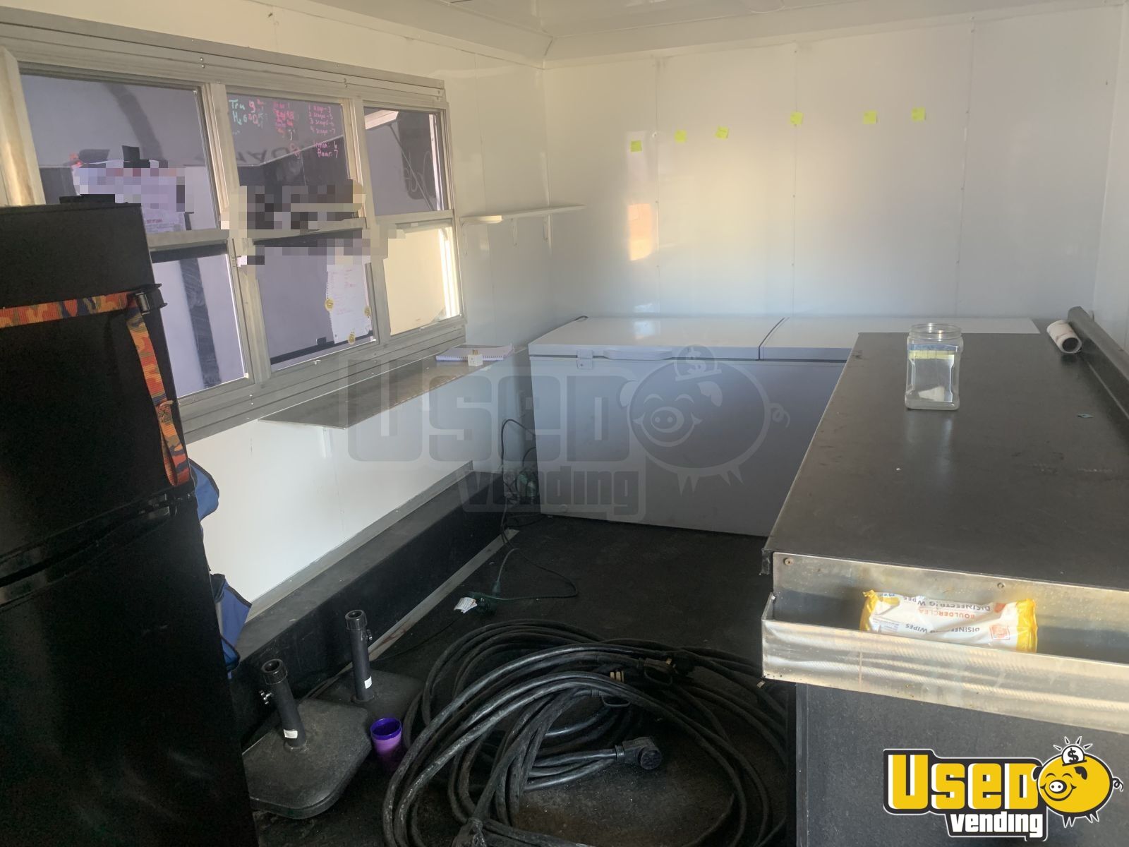 Standout features include: - Dual concession windows - Diamond-plated aluminum flooring - Deep freezer and insulated walls - Removable hitch and exterior customer counter - 50-amp hookup with four 50' cords - Interior lighting and cabinets