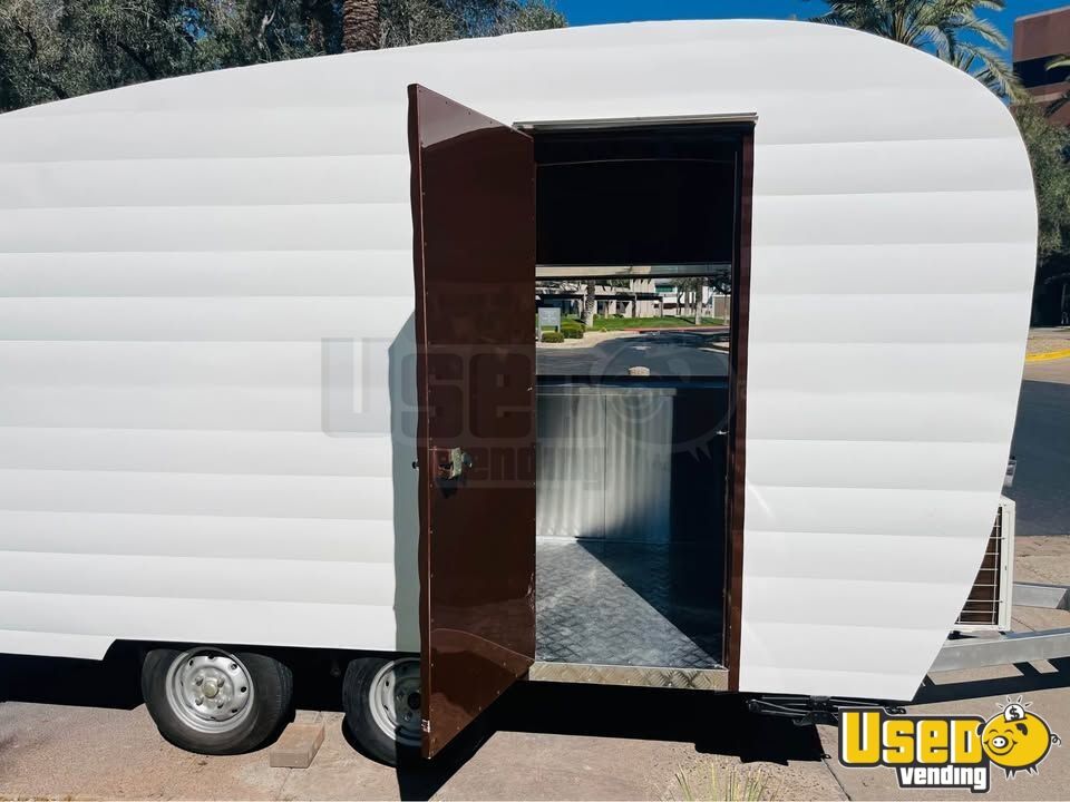 This vintage style concession trailer offers a timeless exterior with modern readiness for your next mobile business. Compact yet practical, it’s ideal for transforming into a beverage or food service unit. Need to know more? Call us now!