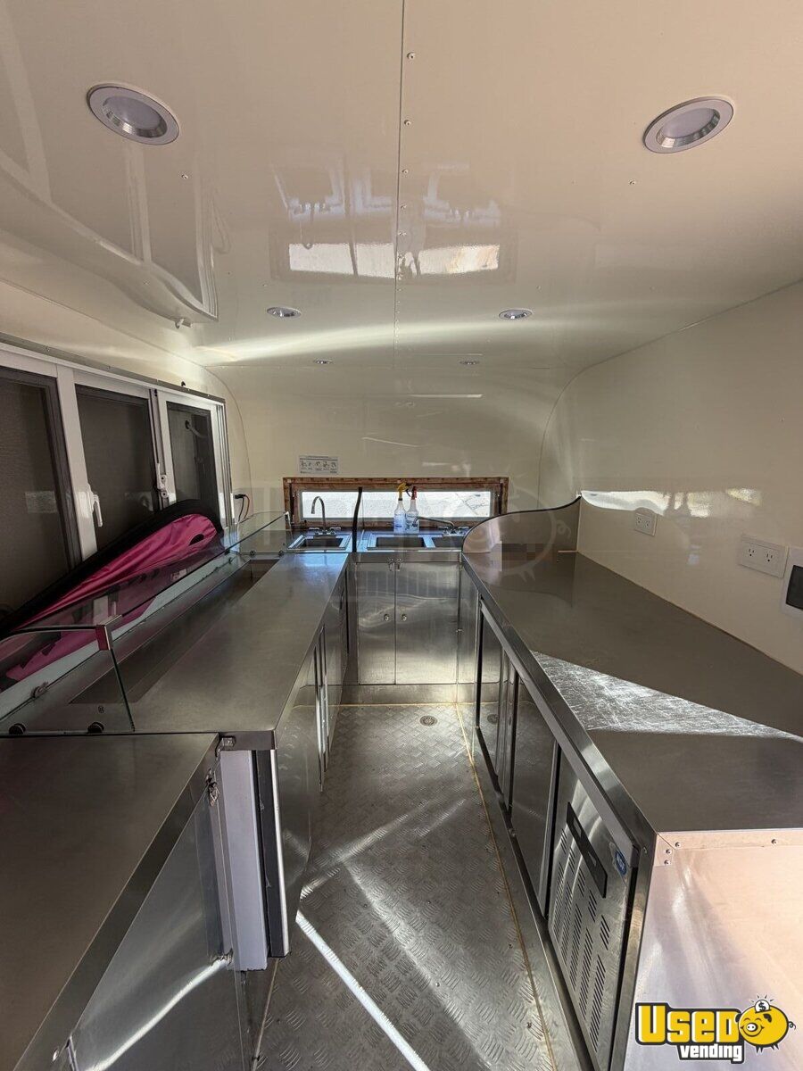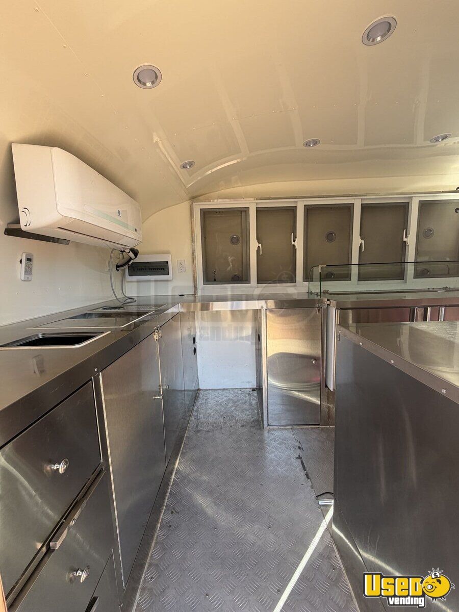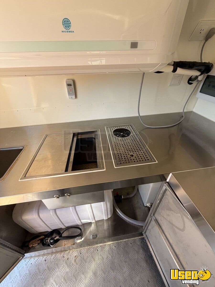 This coffee trailer blends charm with modern efficiency. Outfitted with a freezer and ample workspace, it’s ideal for serving coffee, tea, or beverages. The clean stainless-steel interior and functional design make it ready to operate immediately. Need to know more? Call us now!