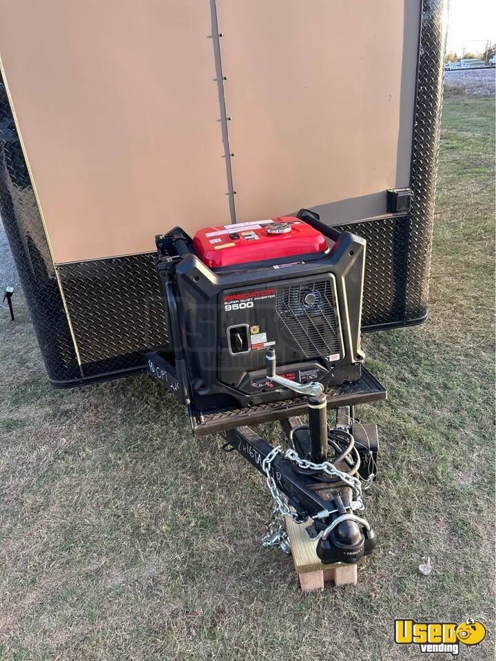 Standout features include: - 9500 Predator generator with cover - Three-compartment sink and handwashing station - Hot water heater and water pump - 60-gallon fresh and grey water tanks - Built-in AC/heating unit and interior lighting - Mounted counters, tables, and shelves