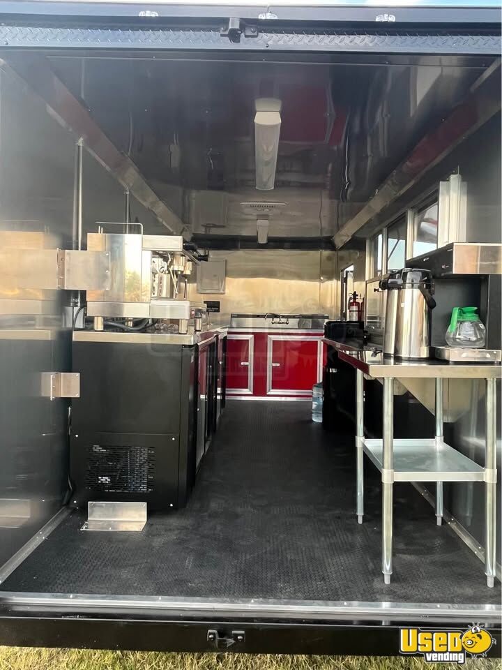 This used coffee trailer offers a ready-to-go setup for mobile beverage service. Custom built in late 2024, it features a spacious 16ft by 7ft layout with a sturdy design and red exterior under a removable wrap.