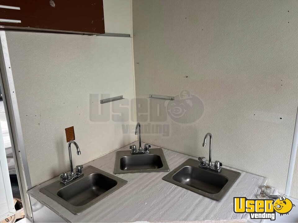 This spacious food trailer is functional, and ready to operate with only a hood needed to fully comply for service. Recently upgraded with a new floor and countertops, it offers a foundation for starting or expanding a mobile food business. Learn more about this unit by calling us now!