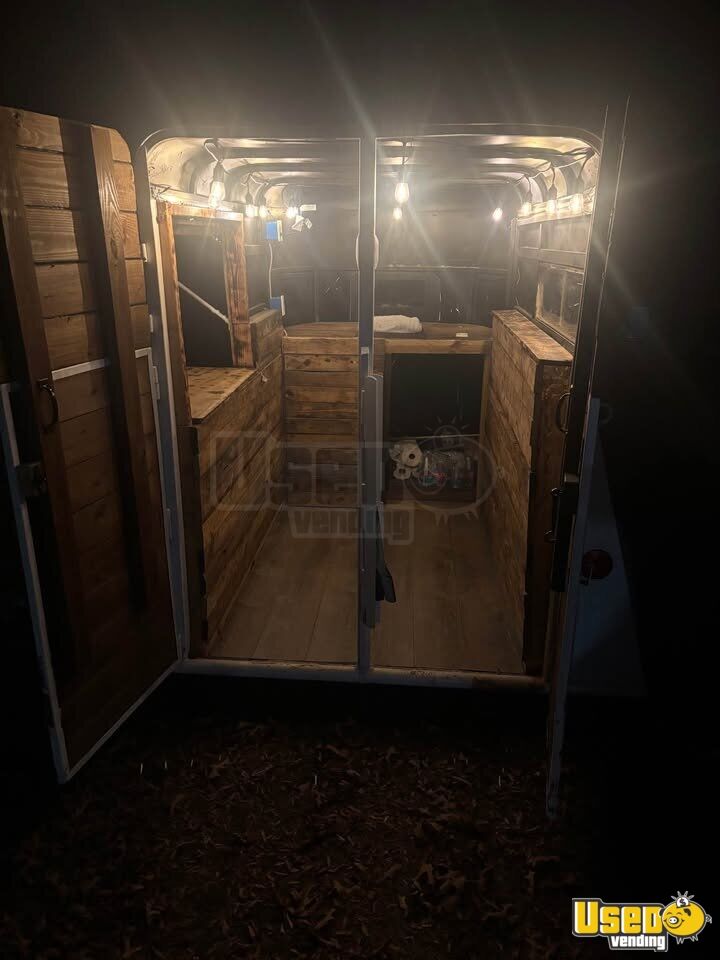 This concession trailer offers a functional setup perfect for events, weddings, or festivals. Housed in a renovated horse trailer, it delivers a professional and inviting experience for guests while remaining easy to transport and operate. Interested? Call us now!