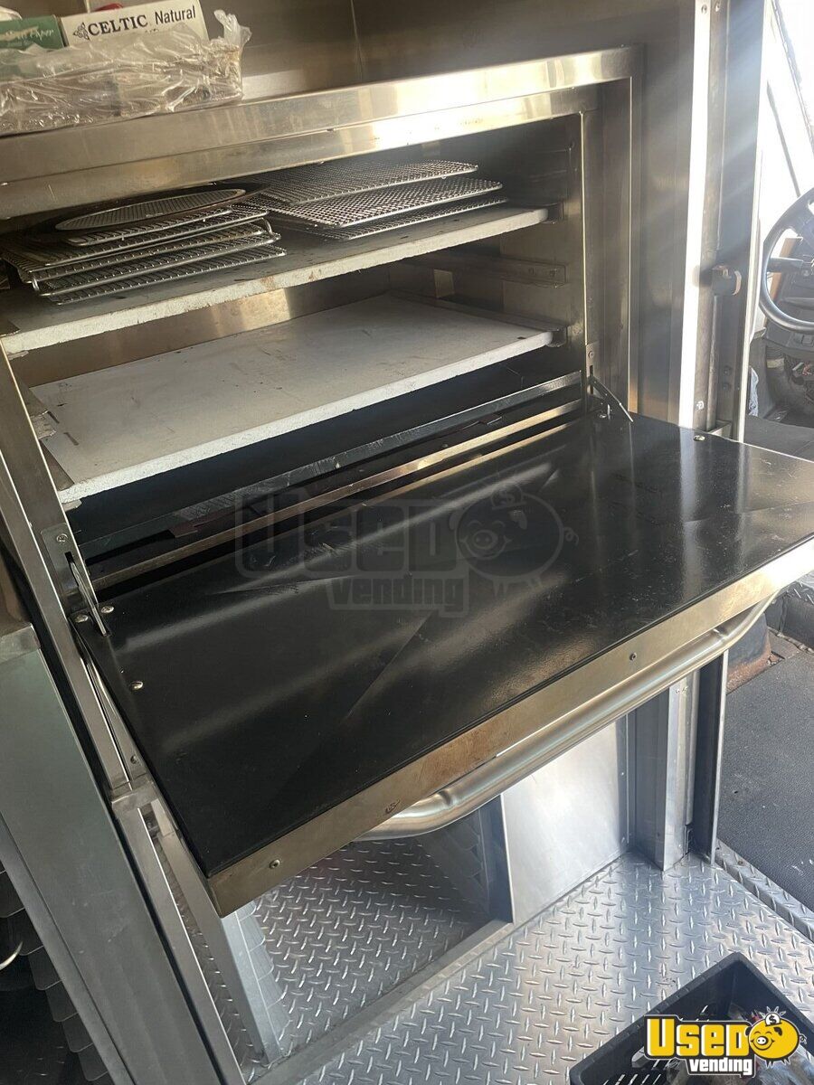 This food truck is equipped to cook and serve pizza and bakery type items. The truck is plotted with the design and colors of an existing brand, you must place and put your design- Wrap/logos will need to be removed or covered within 30 daysSeller can include some disposables like cups/takeaway boxes etc. One battery. Oven and pizza oven are both gas, not electric. Floors are almost new. 6 tires, about 60% life left. Truck is clean inside, will be cleaned outside as well as it is a little dusty.