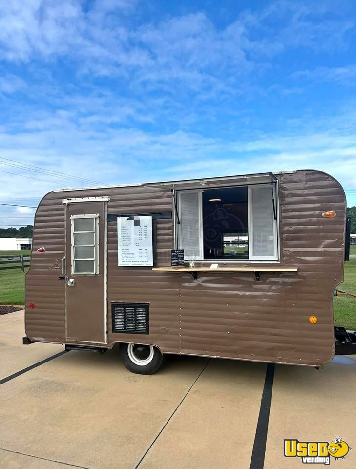 This fully converted mobile coffee trailer, crafted from a 1967 camper, offers a turnkey setup for serving beverages on the go. Professionally rebuilt and updated, it’s ready to start brewing immediately and designed for convenience, efficiency, and visual appeal. Interested? Call us now!
