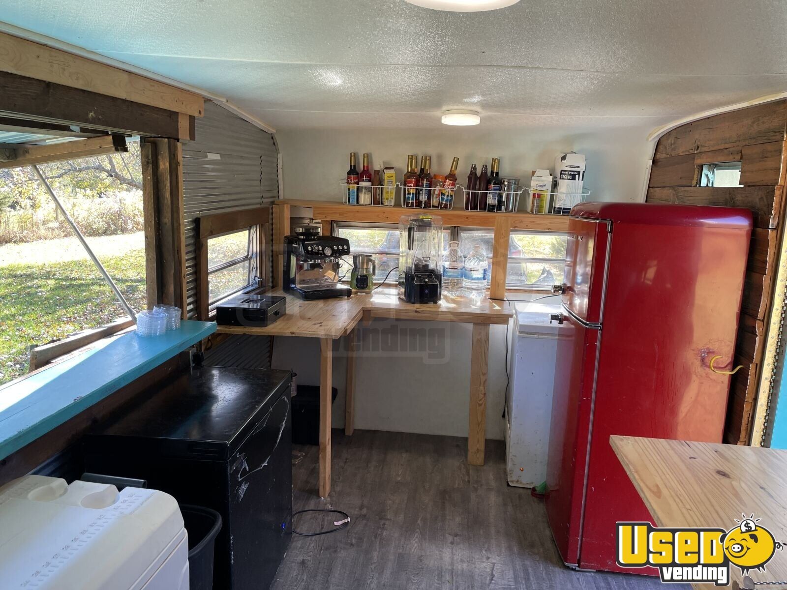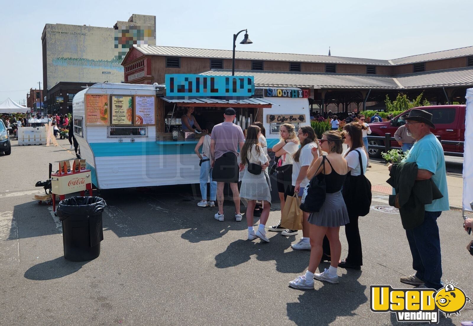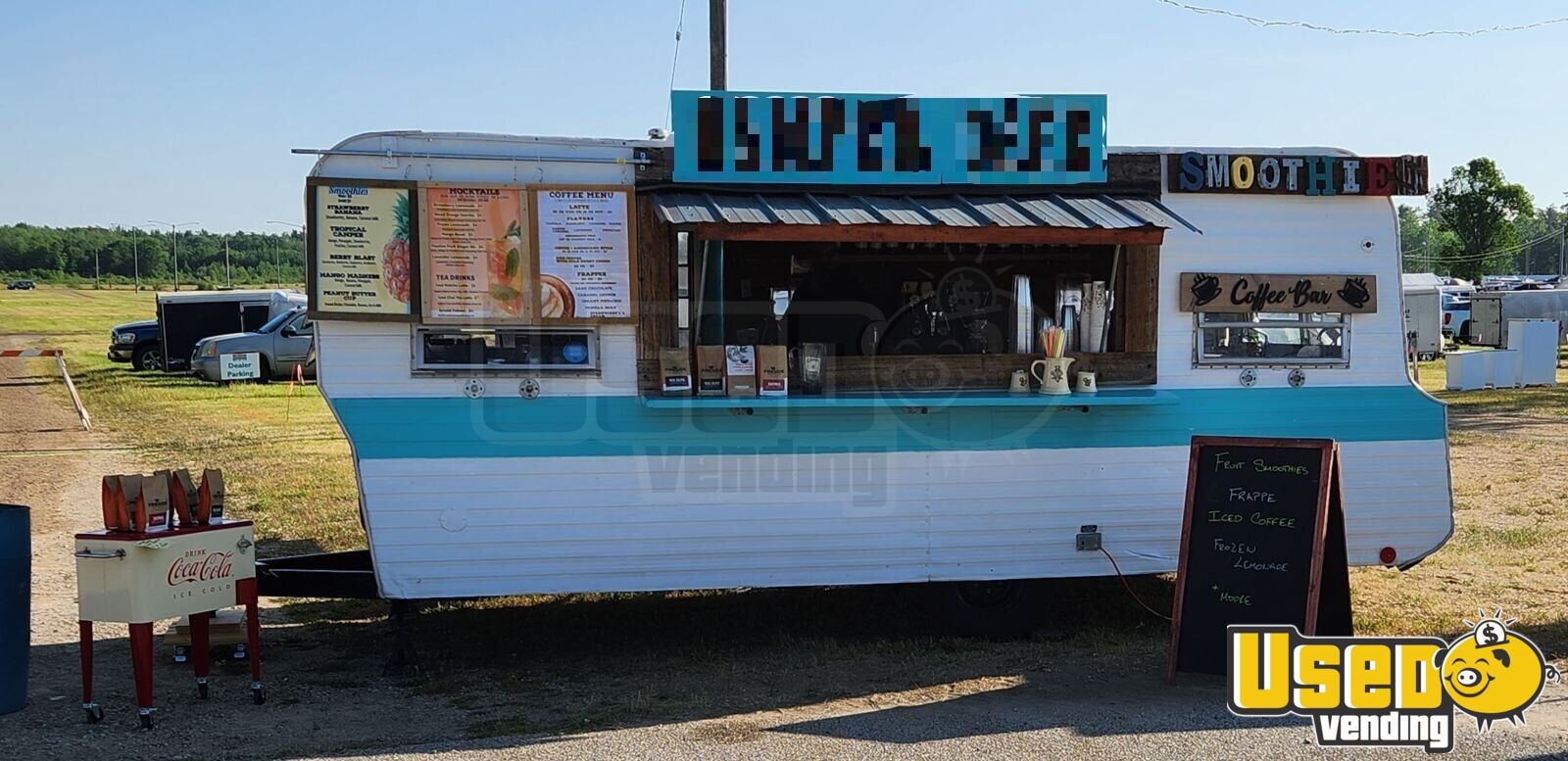 This 1969 Converted Camper coffee trailer combines nostalgic charm with modern functionality. Outfitted in 2020, it has served successfully at fairs and festivals, drawing attention and compliments for its unique look and dependable performance. Perfect for selling specialty coffee or smoothies, it’s ready to roll for your next event.