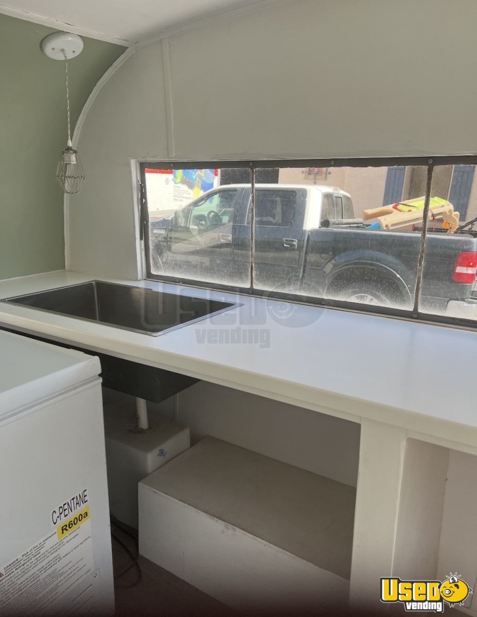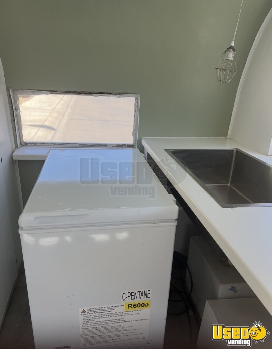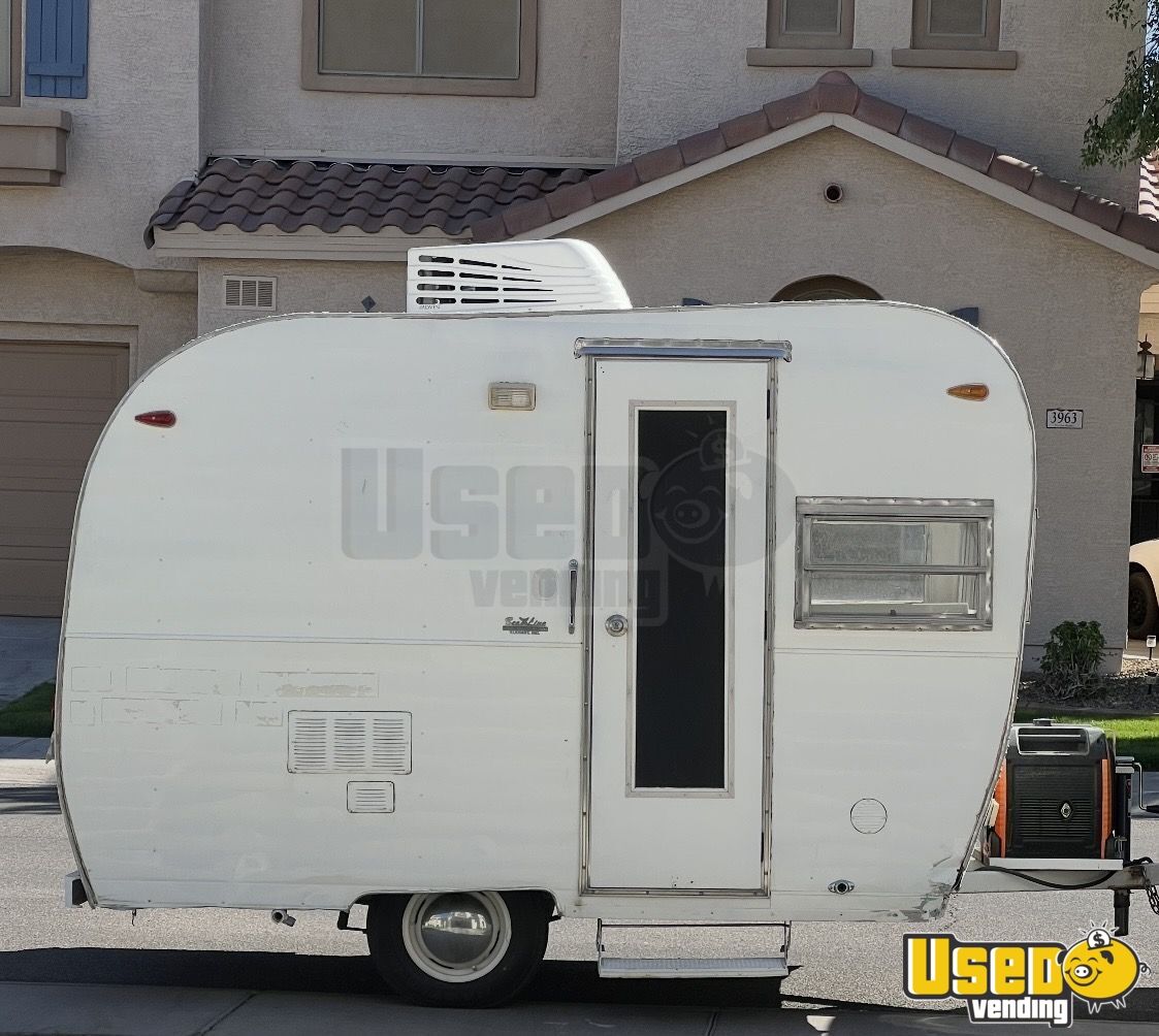 This 1965 shaved ice concession trailer offers a distinctive setup ready for operation. It’s equipped with essential features and has been licensed for use, making it an appealing option for anyone seeking a functional and charming mobile business.