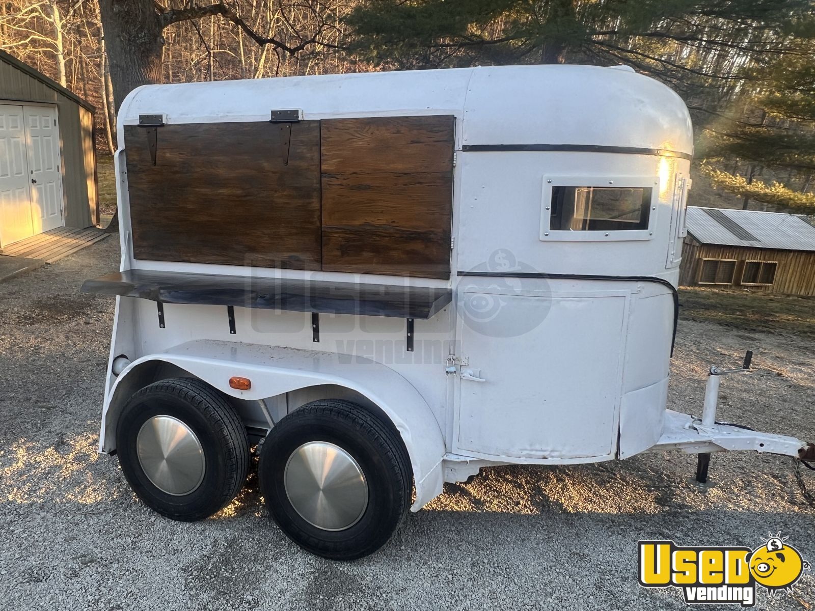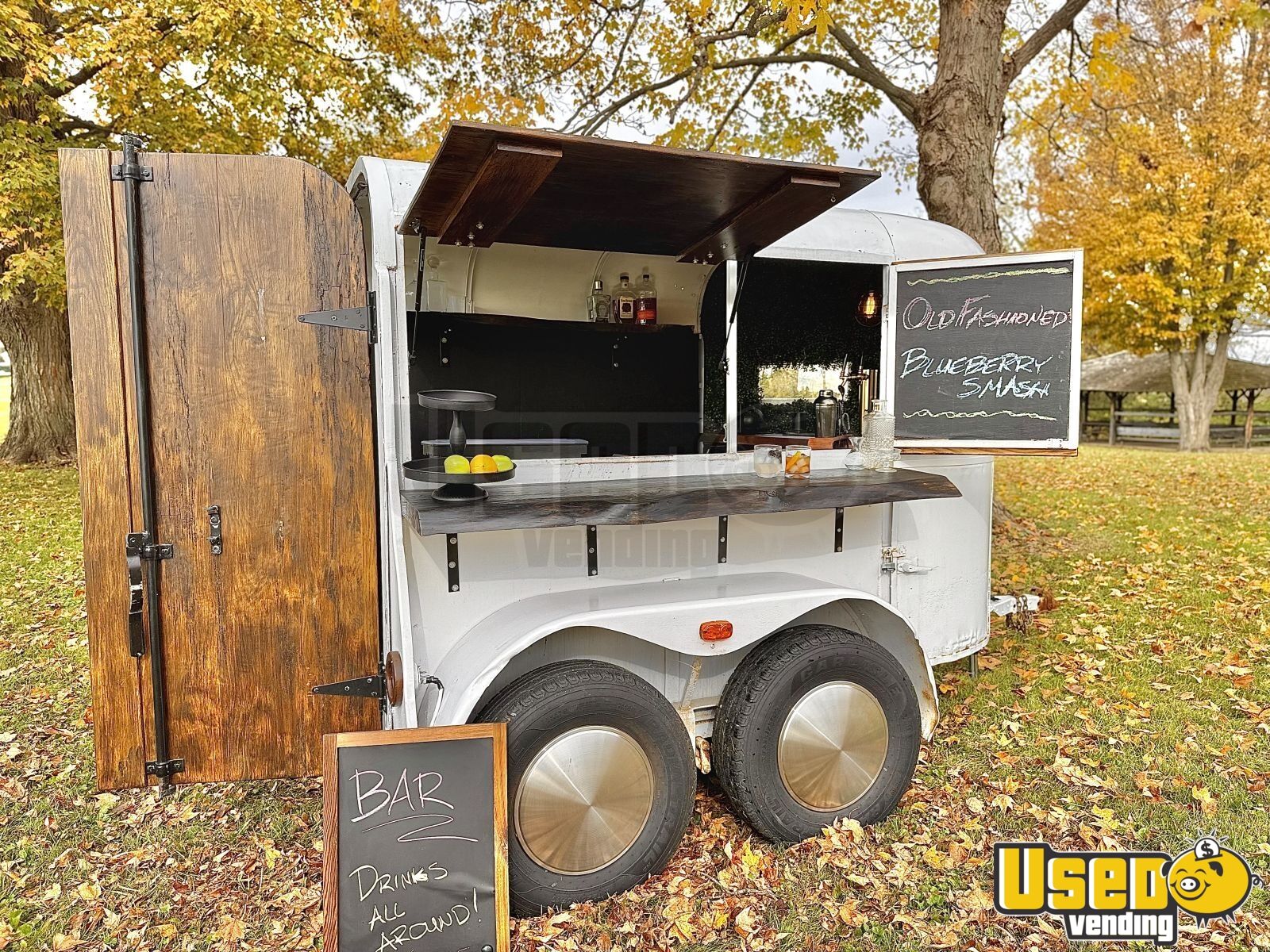 This 1978 mobile bar, crafted from a vintage horse trailer, has been thoughtfully converted into a beverage concession unit ideal for coffee, cocktails, or event service. With its timeless look and modern interior setup, it’s ready to roll into business opportunities anywhere.