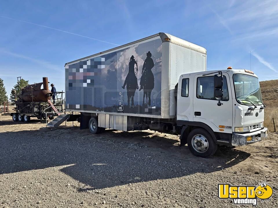 This catering truck with a custom smoker trailer offers a powerful Cummins diesel engine and a kitchen installed in 2015. Built for professional BBQ operations, it’s ready to roll with reliable refrigeration, prep areas, and ample storage for events of any size. Ideal for serious caterers seeking a proven setup. Call today for more details!