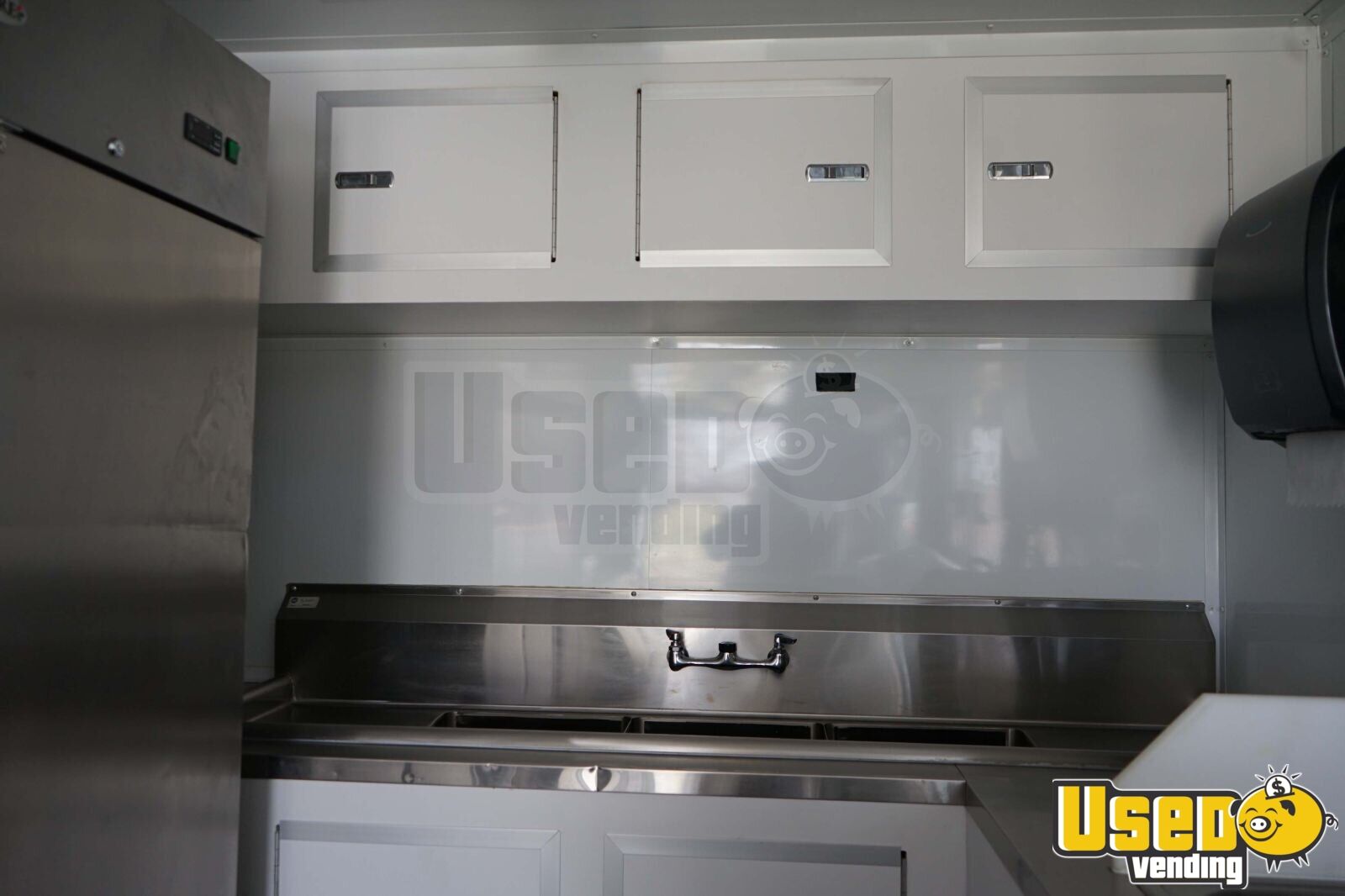 - Refrigeration suite with upright fridge, freezer, and prep cooler