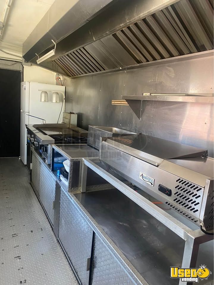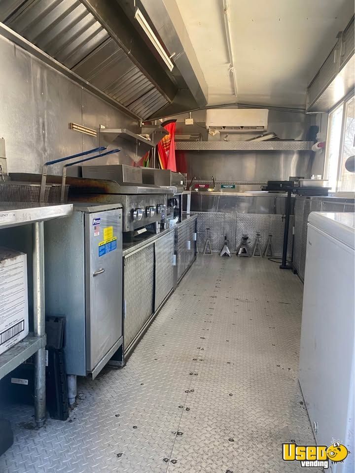 This food trailer is a ready to use mobile kitchen offering a clean interior and abundant space for efficient food service operations. It comes outfitted with essential commercial grade equipment, allowing a smooth start for any culinary venture. Call today to learn more!