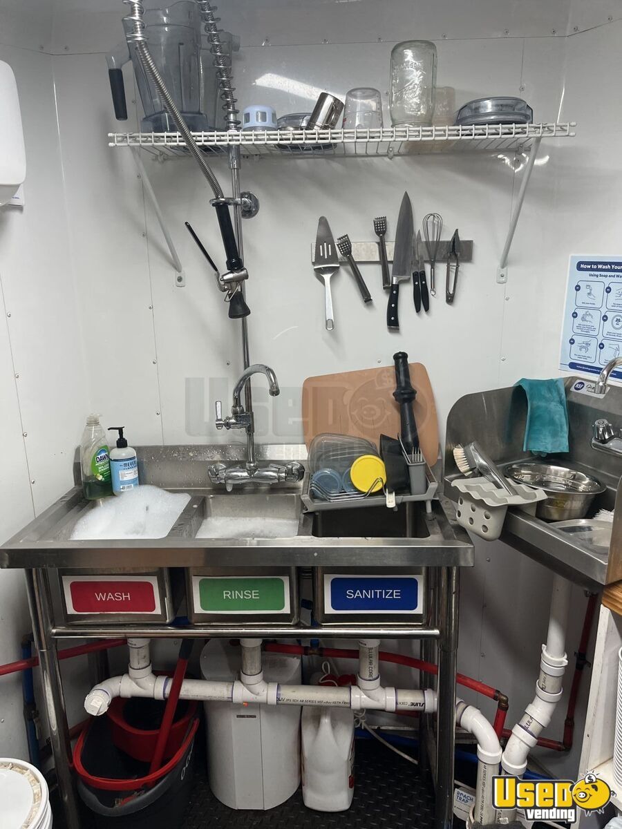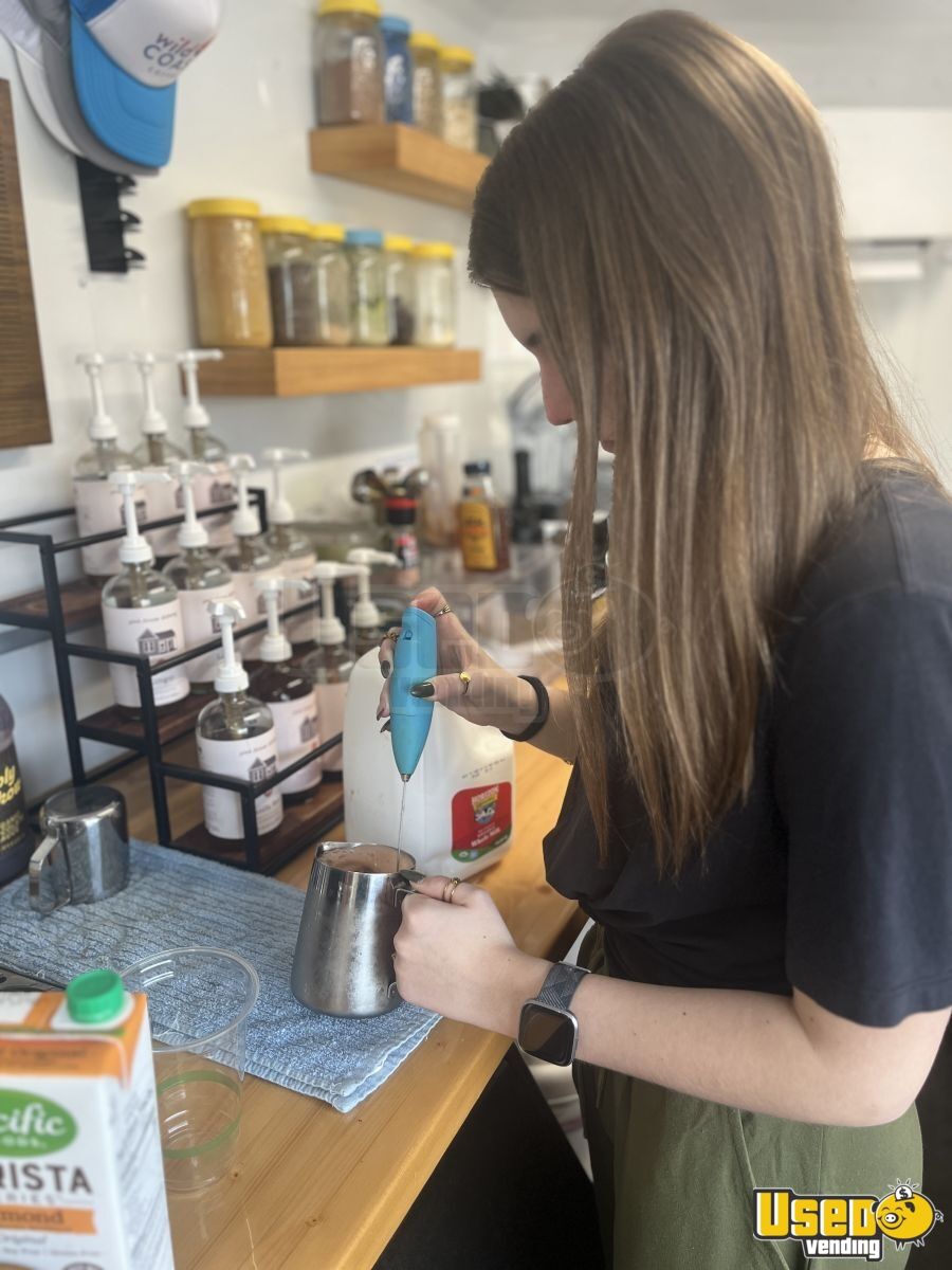 This turnkey 2022 7' x 14' coffee trailer is fully equipped and ready for service. Its professional interior features durable materials, excellent climate control, and a well-organized layout, making it ideal for any beverage entrepreneur. Call today to learn more!