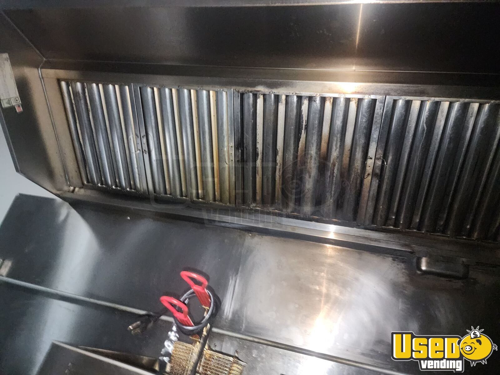 The commercial fridge is located by the door, near the rear of the trailer. I have two prep stations, one in the front and one in the rear.
