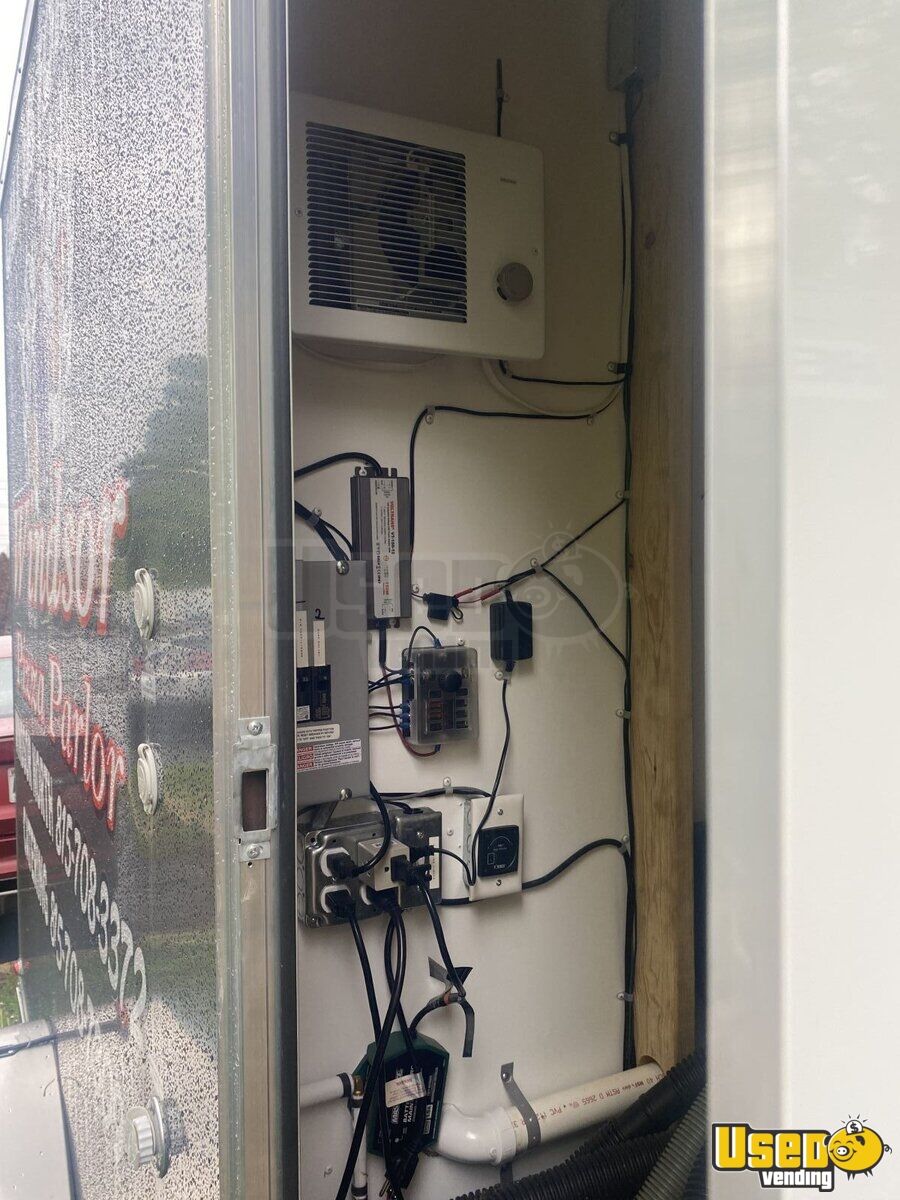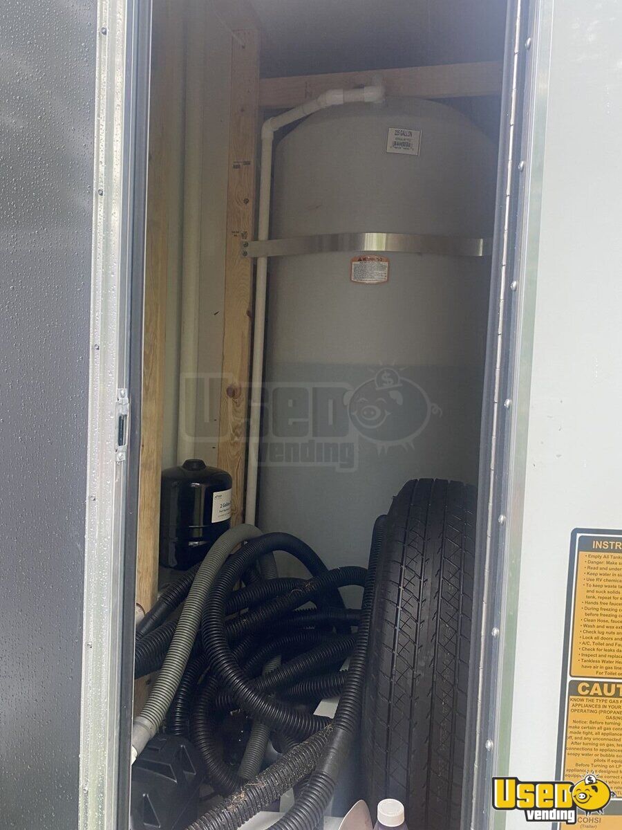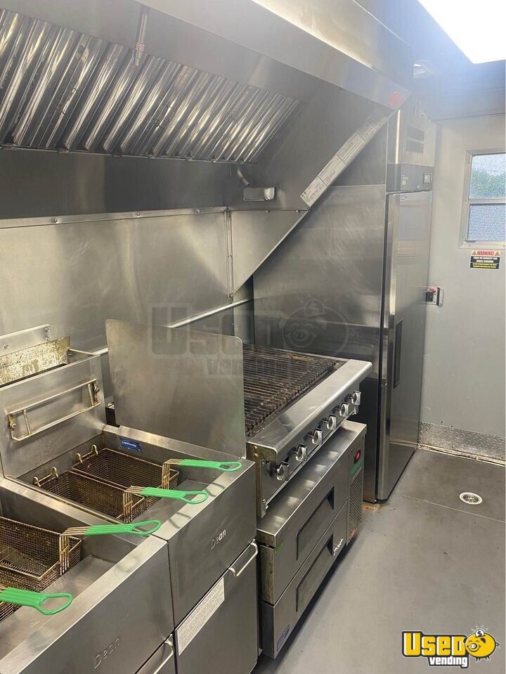 Trailer converted to be able to hook to bulk propane but can easily put 100LBS tanks back on trailer for new owner. Ran a bulk water system but can convert back to regular water system easily for new owner. Plenty of shelving for storage. New Ansul hood, fully tested and functional.