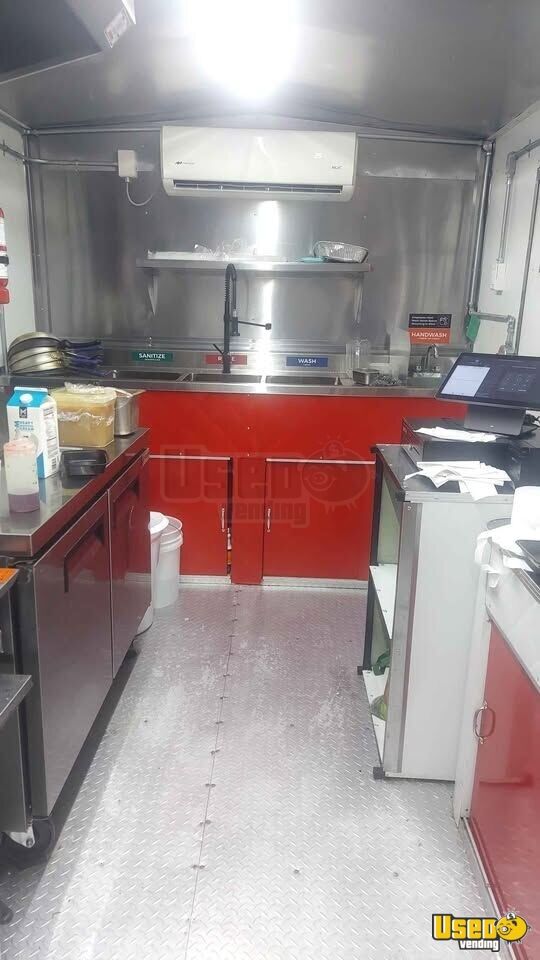 This food trailer is a 22' mobile kitchen designed for efficiency and convenience. It comes fully equipped with an AC unit and has passed all inspections, making it ready for immediate use. Need to know more? Call us now!