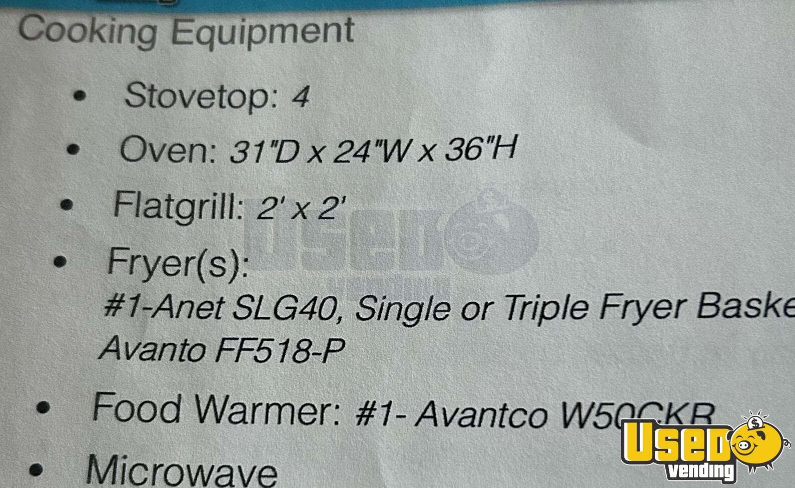 - Two 40-gallon fryers and Avantco food warmer