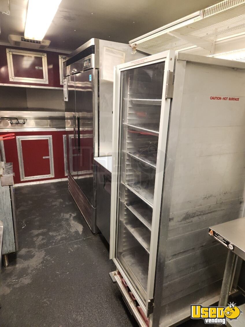This 32' commercial barbecue food trailer is equipped with a complete mobile kitchen and a powerful 1200 lb capacity wood/gas smoker. Health Department compliant and event-ready, it’s designed for high-volume cooking, making it an excellent choice for fairs, festivals, and catering operations. Call today for details and secure this unit!