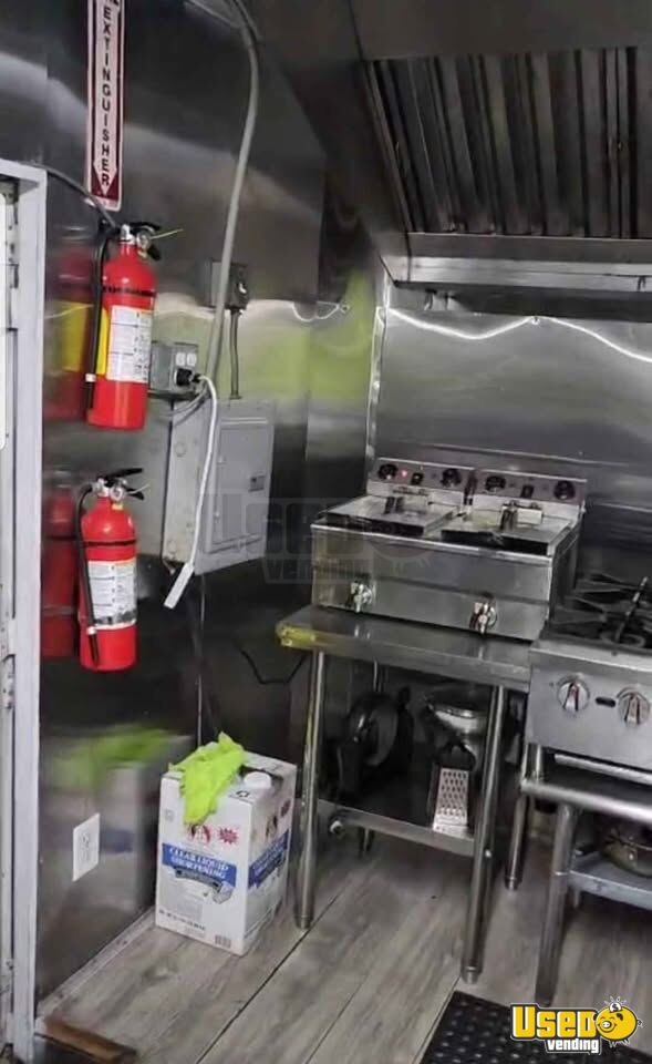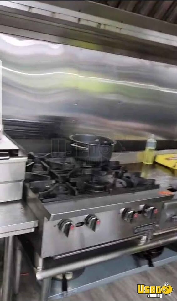 - Deep freezer, stovetop with four burners, flat grill, fryer, and microwave