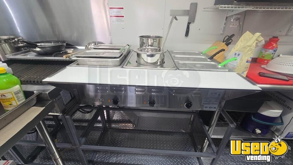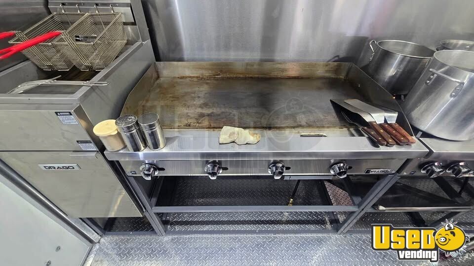 - Four-burner stovetop, chargrill, flatgrill, fryer, and food warmer