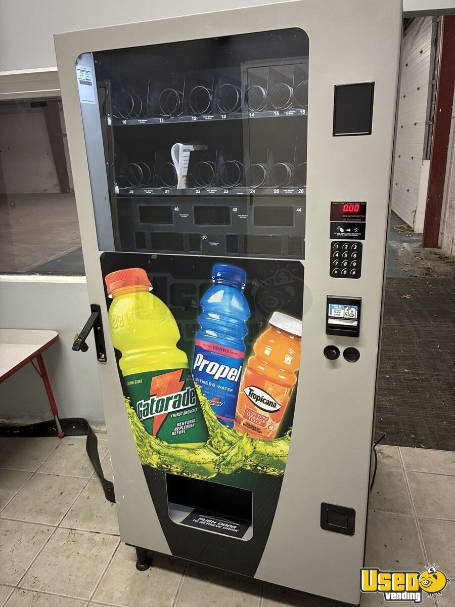 Open to negotiations! This is a fully functioning ice-cold snack and drink combo vending machine. The unit features 19 total selections 14 for snacks, cookies, or candies, and 5 for cans or bottled drinks. Comes with a working key.