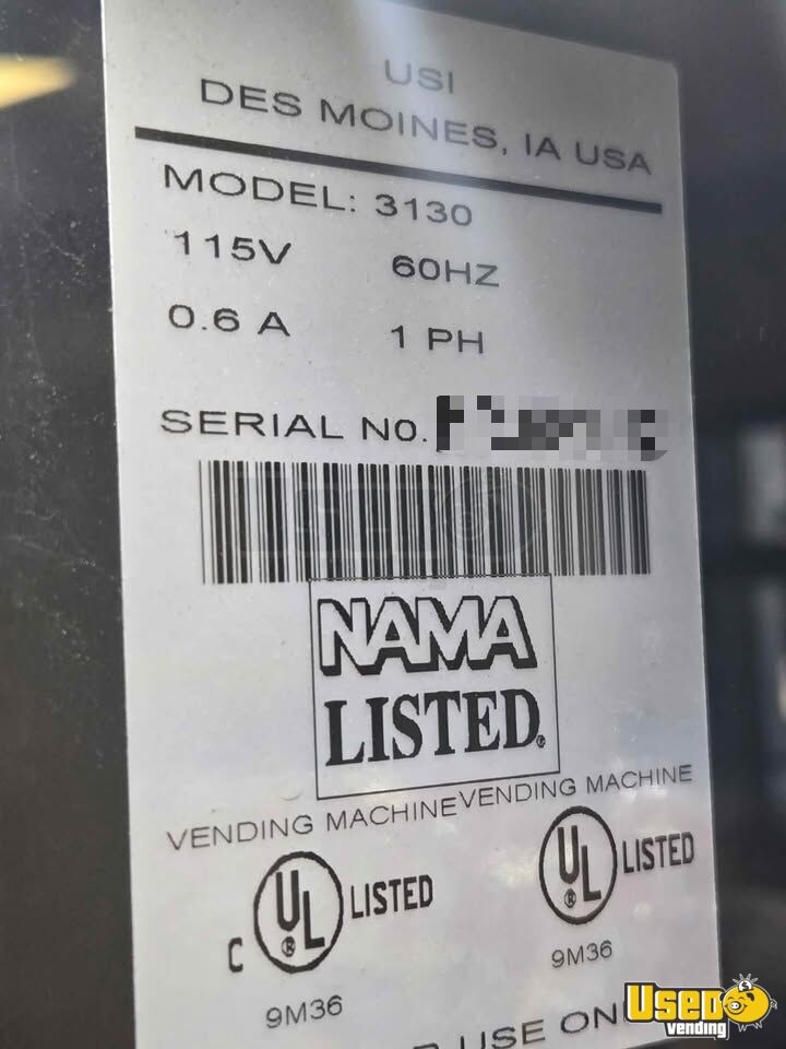 Used USI 3130 snack machine in good condition. Compatible with a credit card reader (not included). Perfect for offices, break rooms, or small businesses.