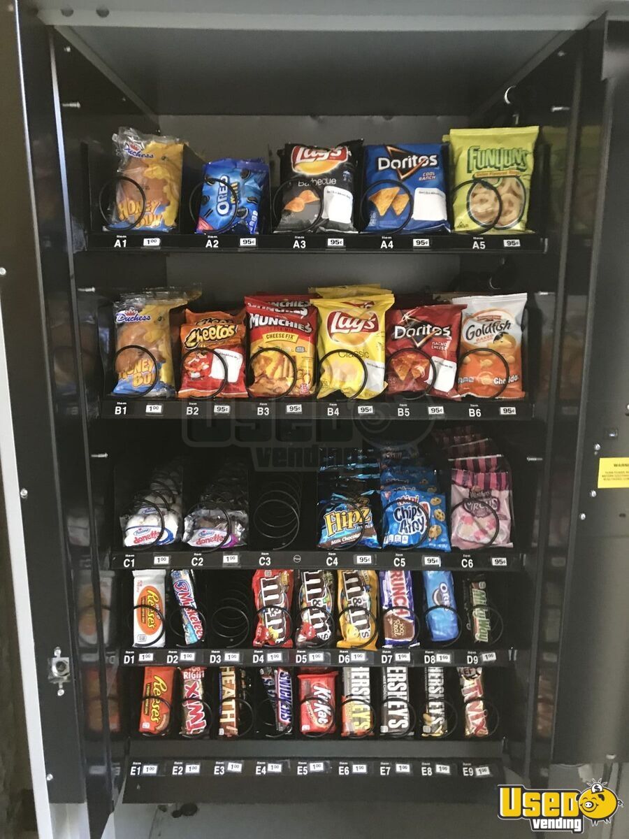 FSI gray snack vending machine in good working condition. Features 35 slots for chips, candy, and other packaged snacks. Ideal for office breakrooms, schools, or small businesses. Two individual slots, C3 and D3, not working. May only be the connection in the back which I don’t know how to fix.